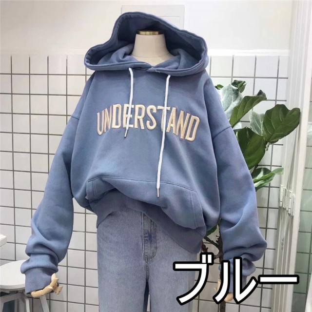 パーカー 4色 オーバーサイズ レディース フード付き 大きめ 大きいサイズ XL 2XL ゆったり 体型カバー 長袖 萌え袖 くすみカラー フード シンプル ロゴ カジュアル ラフ ポケット クール ボーイッシュ メンズライク かっこいい 青 ブルー 水色 ピンク オレンジ 黒 オシャレ