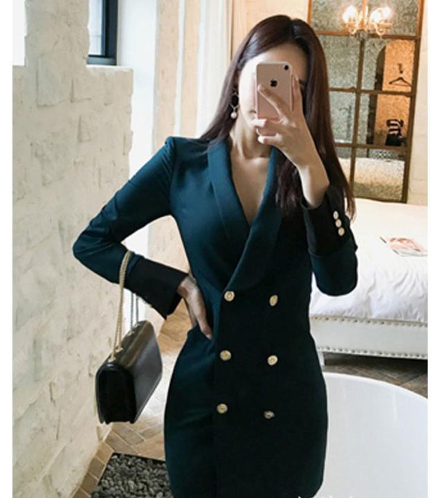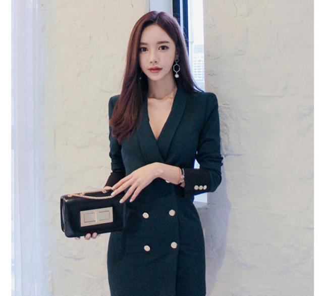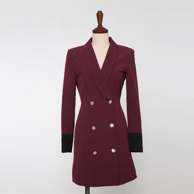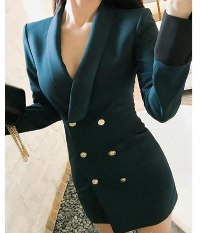 秋冬 スーツ ジャケット アウター ワンピース ジャケット 上着 スーツ ミドル丈 袖あり 長袖 ラウンドネック 襟付き スリム ダブルブレスト レギュラー ポケット 前開き ボタン ポリエステル きれいめ カジュアル 大人 かっこいい 大人女子 キュート セクシー 無地 秋 冬 20代