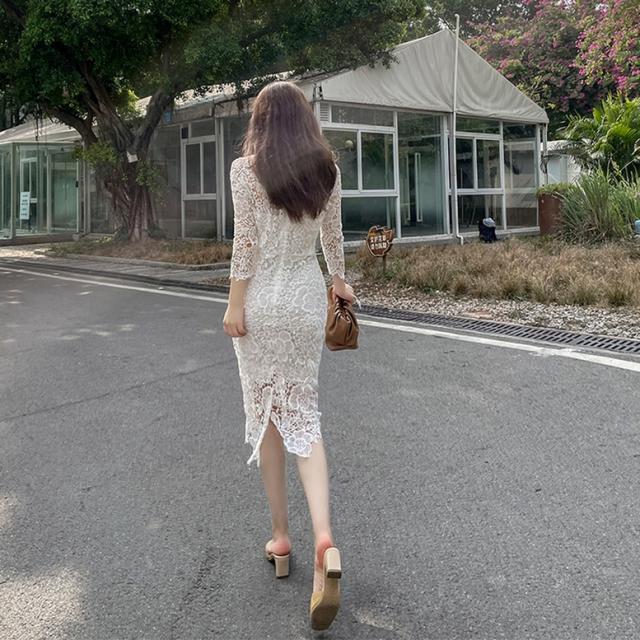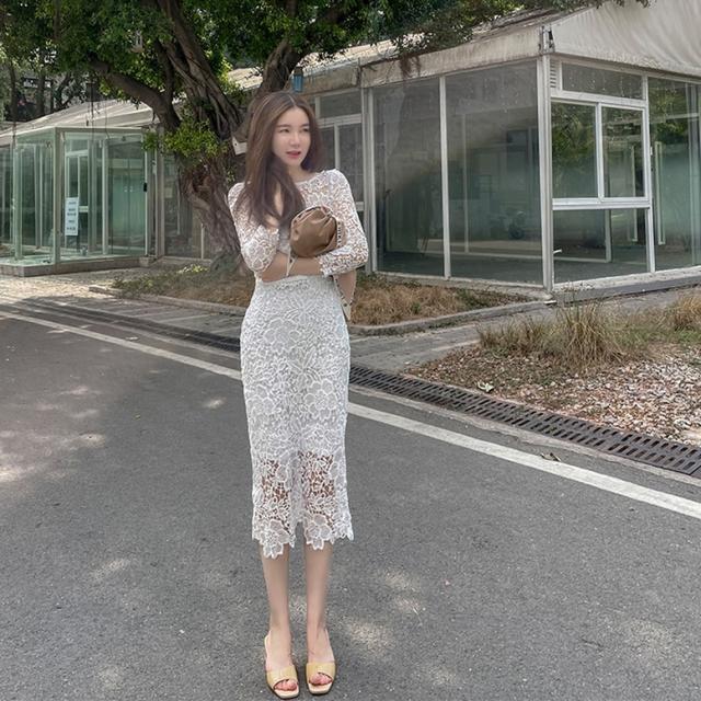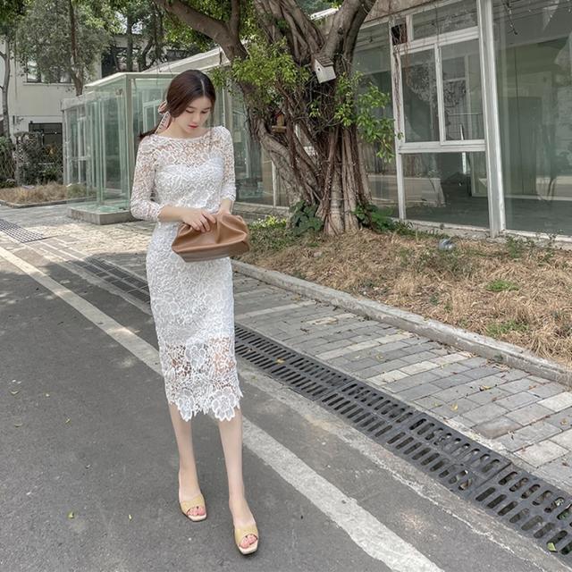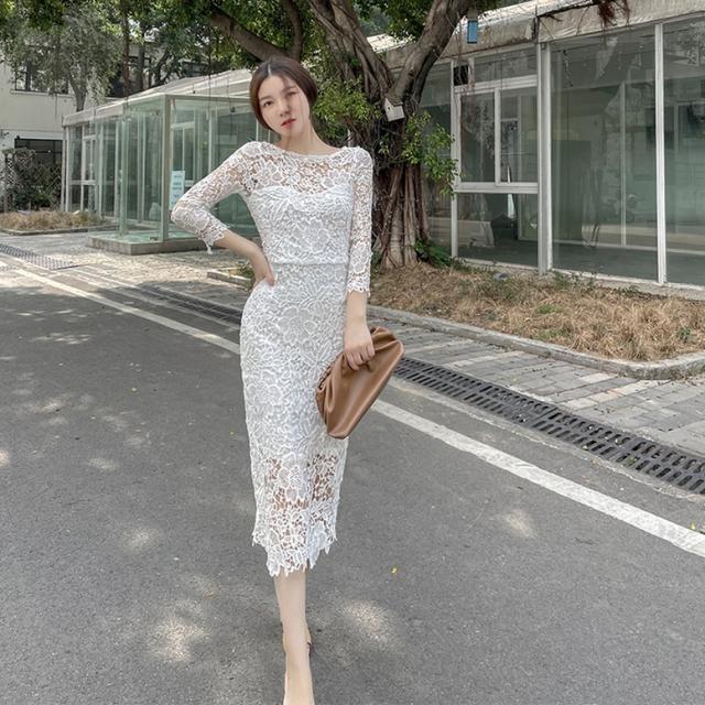 総フラワーレースワンピース ワンピース ドレス レディース 総レースワンピース 結婚式ドレス パーティードレス ミディ丈ドレス タイト 7分袖 花柄 刺繍 レース ボートネック 透け感 シースルー 白 ホワイト ワンピドレス パーティドレス 大人可愛い きれいめ 上品 ガーリー エレガント フォーマル 春 夏 秋 冬 二次会 お呼ばれ 謝恩会 結婚式 披露宴 セレモニー オフィス ビジネス OL 通勤 学生 通学 デート お出かけ パーティー イベント 女子会 体型カバー 美脚 ゆったり インスタ映え