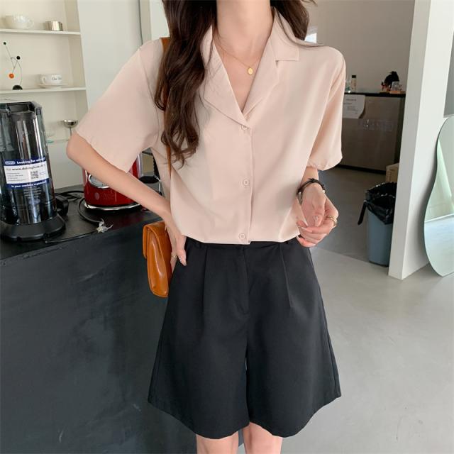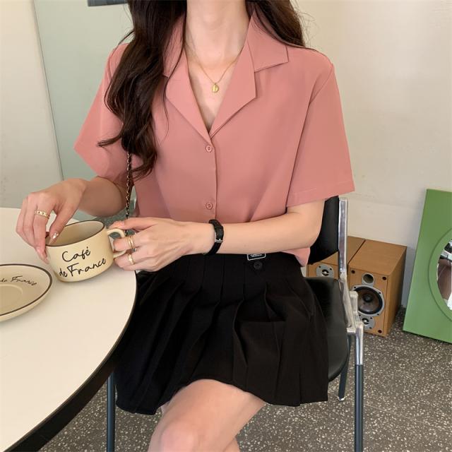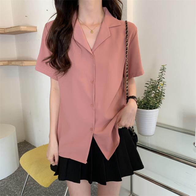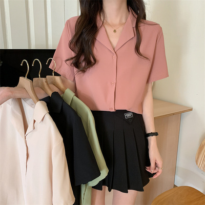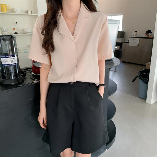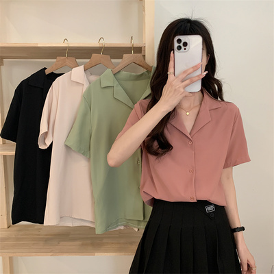 ブラウス 4色 半袖 オープンカラー レディース 大きいサイズ 大きめ 2XL 3XL 4XL XL 春 夏 秋 五分袖 くすみカラー トップス シャツスーツ ピンク 黒 ブラック 緑 グリーン ベージュ ОL 通勤 通学 学生 Vネック 20代 30代 40代 50代 仕事 オフィス シンプル カジュアル きれいめ エレガント 大人可愛い 大人女子 かわいい お洒落 オシャレ ゆったり ビッグサイズ こなれ感 ラフ クール フォーマル 入学式 卒業式 学生 カラーシャツ