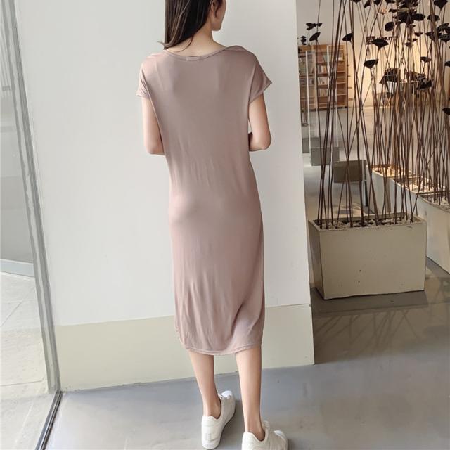 ロングTシャツワンピース ワンピース レディース シャツワンピース ルームウェア Vネック 半袖 ロング丈 とろみ 光沢 ドレス フィット スリム 青 黒 灰色 黄緑 茶色 赤 ベージュ ブルー ブラック グレー イエローグリーン ブラウン レッド アッシュグリーン 大人可愛い きれいめ 上品 春 夏 秋 冬 お出かけ パーティー イベント 女子会 休日 旅行 体型カバー 普段使い 定番 トレンド ゆったり インスタ映え くすみカラー カラバリ 無地