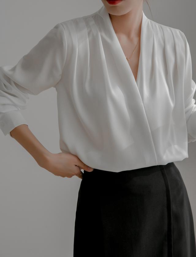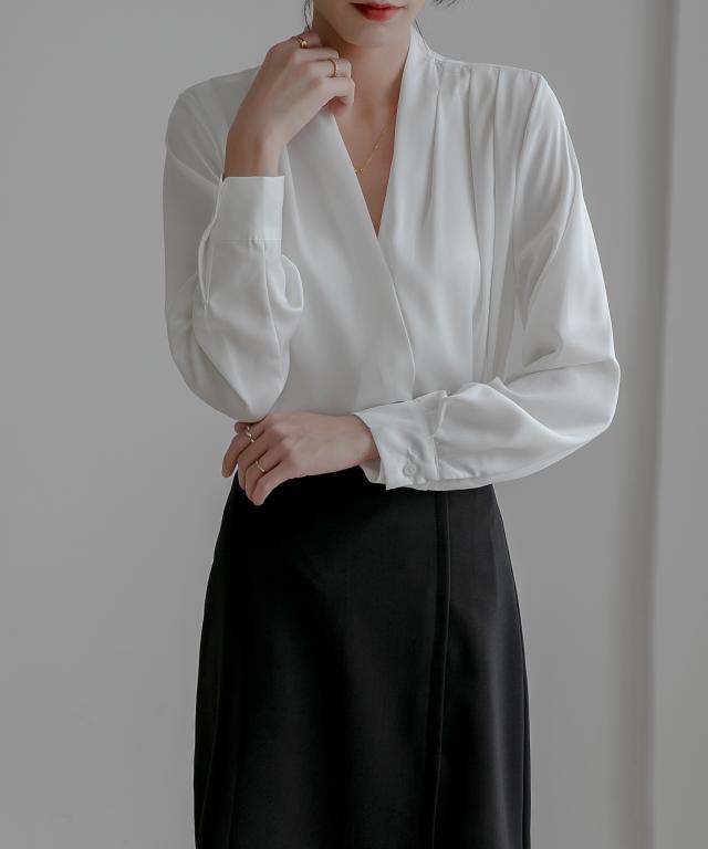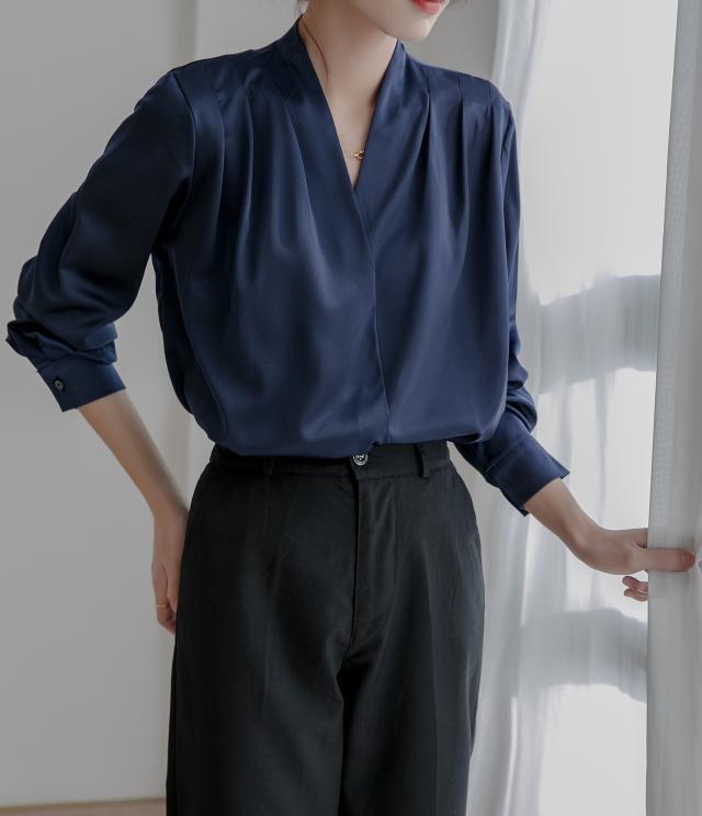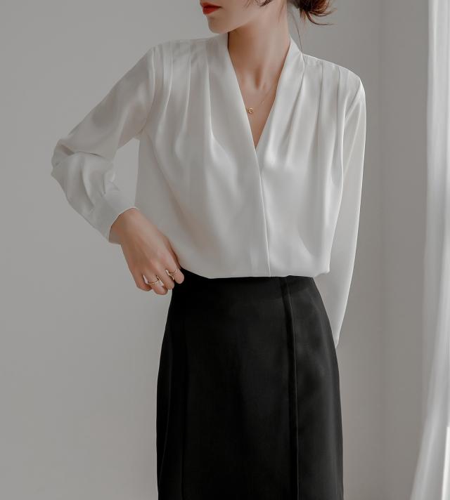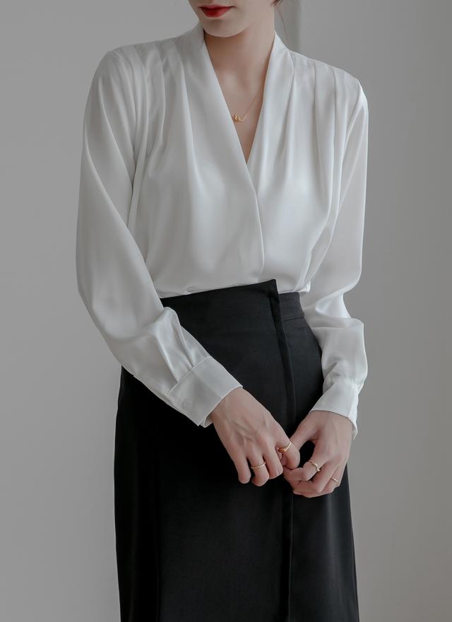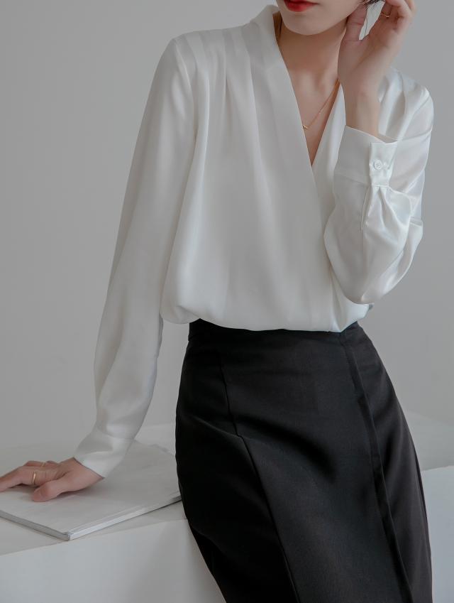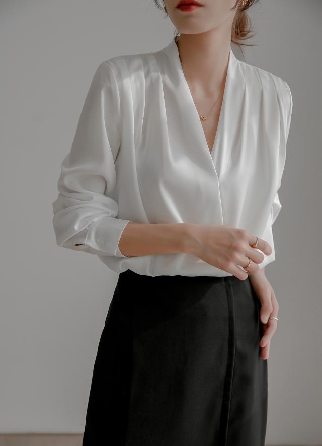 ブラウス 長袖 Vネック レディース サテン 白 ホワイト 紺 ネイビー シフォン サテン セクシー スーツ オールシーズン 春 秋 冬 小顔 ゆったり 大きいサイズ XL 体型カバー オシャレ お洒落 かわいい 大人可愛い きれいめ エレガント 上品 クール かっこいい とろみ 抜け感 こなれ感 ОL オフィス 通勤 入学式 卒業式 パーティー 20代 30代 40代 50代 トップス シャツ Iライン ストレート シンプル 無地 光沢