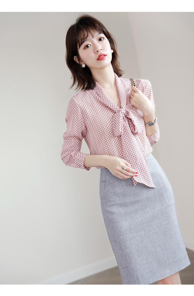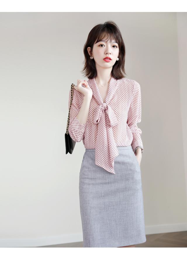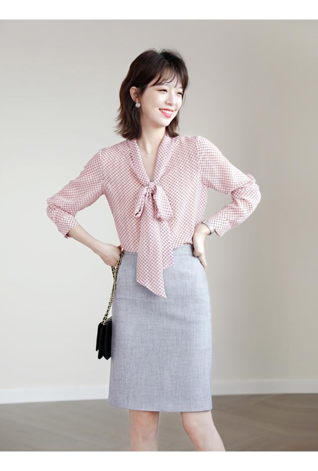 シフォンブラウス ドット 水玉 リボン付き レディース リボン スカーフ 長袖 Vネック シフォン トップス シャツ ブラウス カットソー くすみカラー 抜け感 とろみ お洒落 オシャレ 薄手 オールシーズン 春 夏 秋 冬 かわいい 大人可愛い 大人女子 キュート ガーリー ふんわり