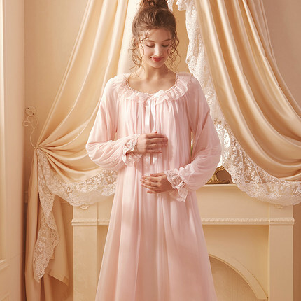マタニティ 授乳服 パジャマ レディース ルームウェア 部屋着 ネグリジェ 授乳 妊婦 妊娠 ママ とろみ 存在感 薄手 フリフリ ふんわり 大きめ 大きいサイズ ゆったり 姫系 ゴージャス 春 夏 秋 長袖 フリル リボン ロング丈 ロングワンピース 膝下 膝丈 ラウンドネック 通気性 吸水性 透け感 抜け感 オシャレ お洒落 かわいい 大人可愛い 大人女子 ガーリー キュート 量産型 ロリータ ガーリー 無地 シンプル きれいめ エレガント 清楚 20代 30代 40代 上品