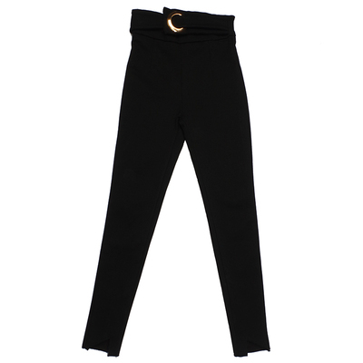 スキニー ハイウエスト バックル レディース タイト スリム 細見え 脚長 美脚 スリット 裾スリット ボトムス パンツ ズボン ロング丈 長ズボン スキニーパンツ レギンスパンツ 黒 ブラック 無地 シンプル カジュアル きれいめ セクシー オシャレ お洒落 20代 30代 40代 小さめ XS 大きめ XL 個性派 個性的 ギャル かっこいい クール 上品 秋 冬 春 伸縮性 ゴールド 大人かわいい エレガント