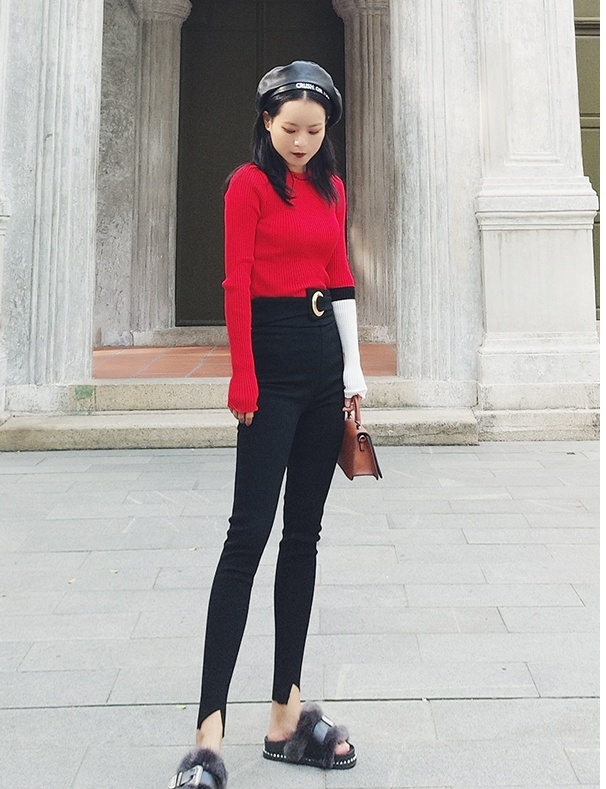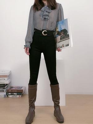 大きめのバックルがゴージャスなスキニーパンツです。