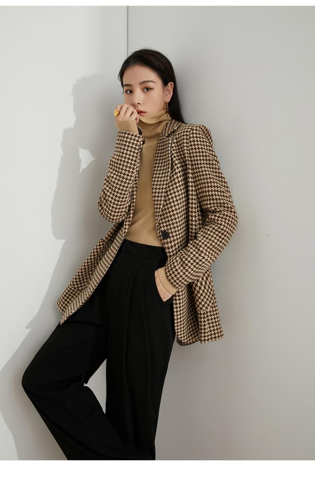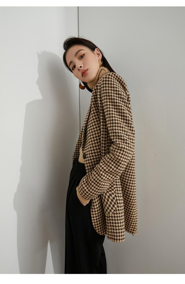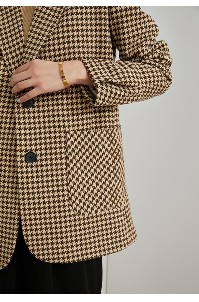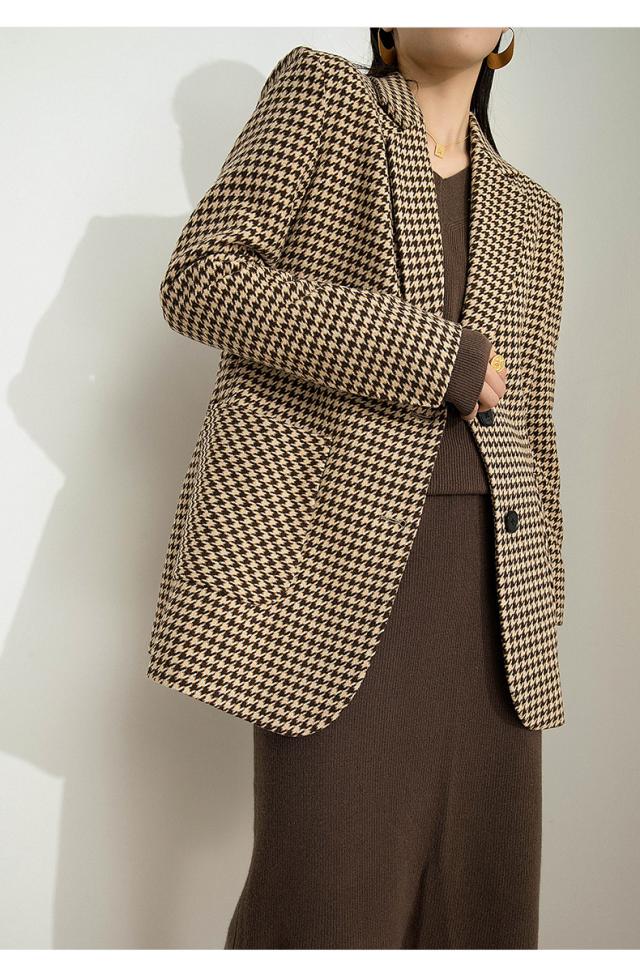 トップス ジャケット 長袖 大人可愛い きれいめ シンプル カジュアル 上品 おしゃれ 大人女子 こなれ感 モダン 主役級 千鳥格子 秋 冬 10代 20代 30代 40代 レディース 女性用 OL 通勤 デート お出かけ 女子会 休日 パーティー ホテル レストラン 着回し 普段使い ファッション コーデ スタイル サイズ S M L XL ブラウン