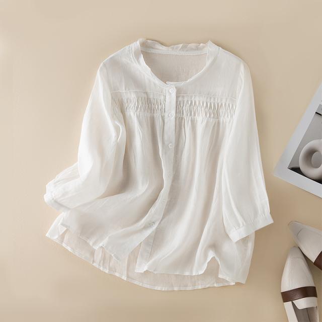 透け感 ブラウス トップス シャツ プルオーバー 五分袖 体型カバー 二の腕カバー 大人可愛い きれいめ シンプル カジュアル キュート 大人 おしゃれ ガーリー お洒落 かっこいい 大人女子 レディライク 女の子 きちんと 春 夏 秋 10代 20代 30代 40代 50代 60代 レディース