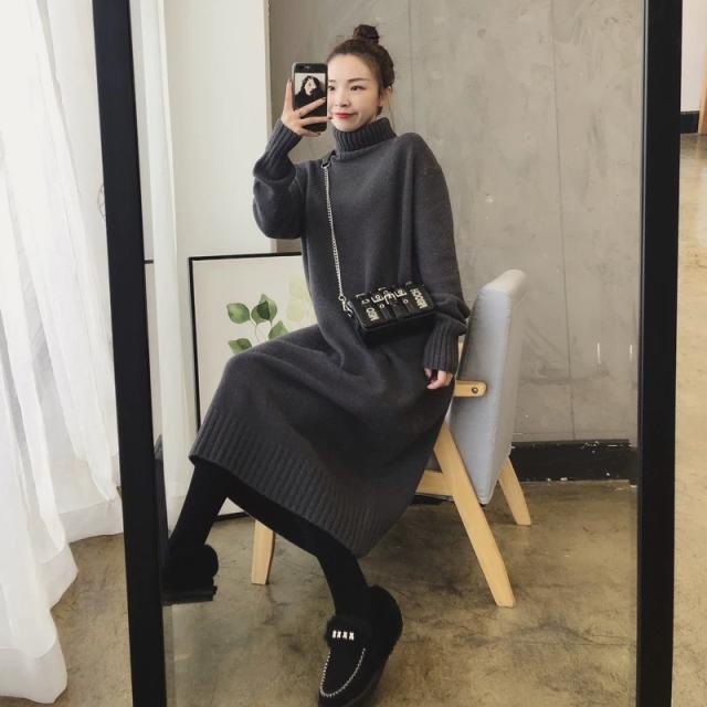 レディースセーター トップス ワンピース セーター ミディアム丈 長袖 ハイネック タートルネック ストレート もこもこ モコモコ ふわふわ リブニット 綿 厚手 大人可愛い きれいめ シンプル カジュアル おしゃれ お洒落 大人女子 こなれ感 ガーリー ルーズ クール 無地 冬