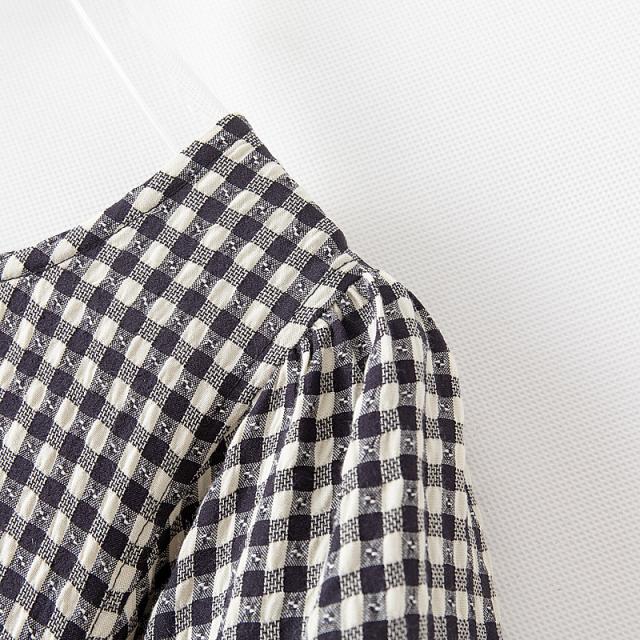 袖はパフスリーブでふんわり、黒のギンガムチェックで可愛らしさいっぱい♪
