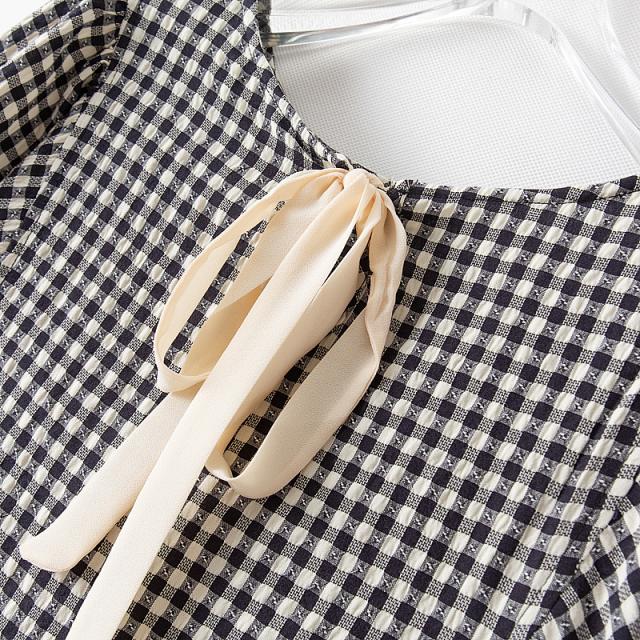 バックリボン チェック パフスリーブ トップス ブラウス レディース バックデザイン 大きめ ゆったり 大きめサイズ 上品 エレガント こなれ感 おしゃれ オシャレ 春 夏 半袖 5分袖 ふんわり ガーリー キュート 可愛い 大人可愛い 大人女子 ゆめかわ 20代 30代 40代 リボン 黒チェック ギンガムチェック