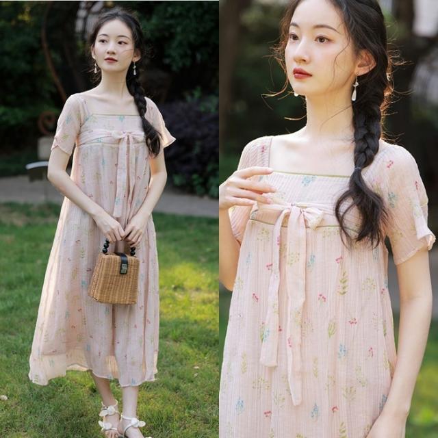 ワンピース レディース 花柄ワンピース ロングワンピ S M L ピンク パステルカラー シャーベットカラー 花柄 フラワー フローラル ボタニカル 春 夏 半袖 リボン スクエアネック バックシャン 切り替え ロング丈 ロング ミモレ丈 膝下 フレア Aライン ふんわり ゆったり ゆる ルーズ 体型カバー 着やせ ママ フェミニン ナチュラル きれいめ きれカジ カジュアル モテ ガーリー キュート 大人 大人可愛い 存在感 主役級 こなれ感 ぬけ感 デート お出かけ 休日 デート 韓国 オルチャン