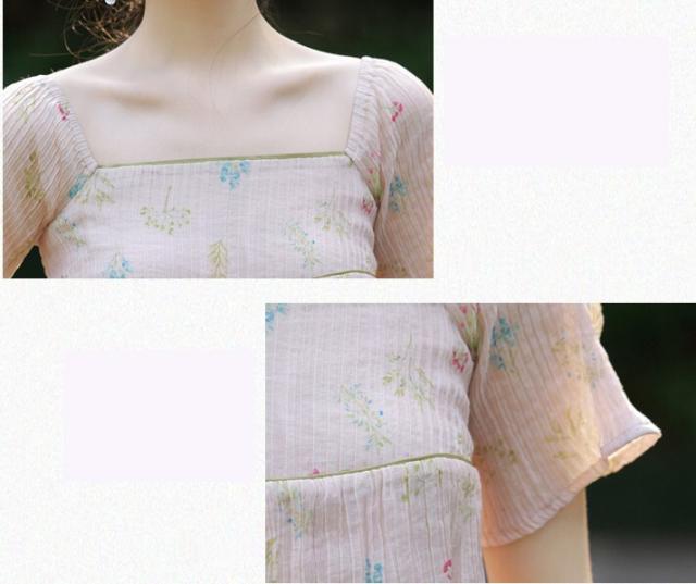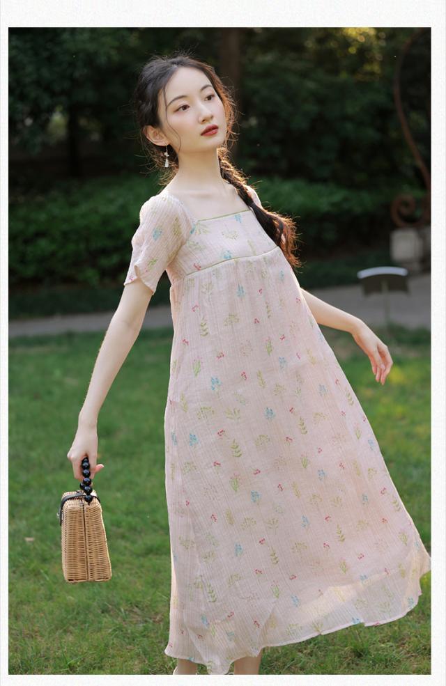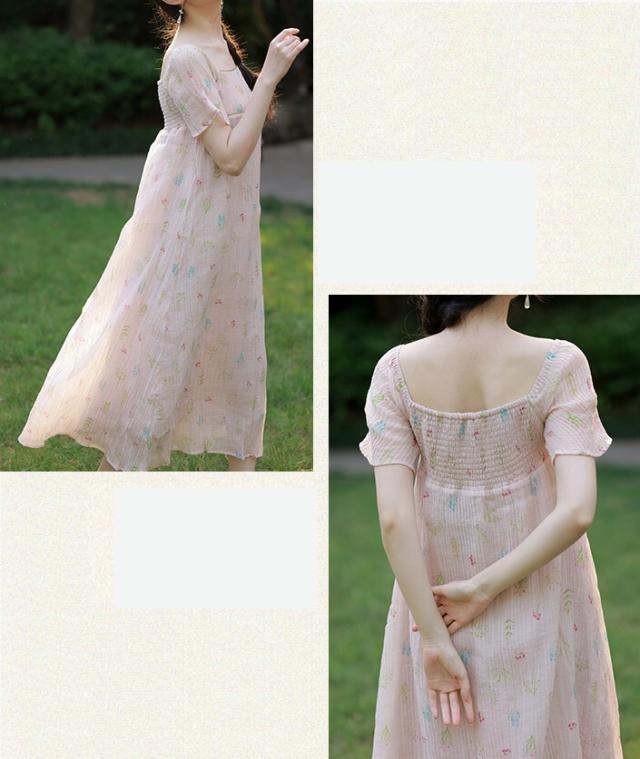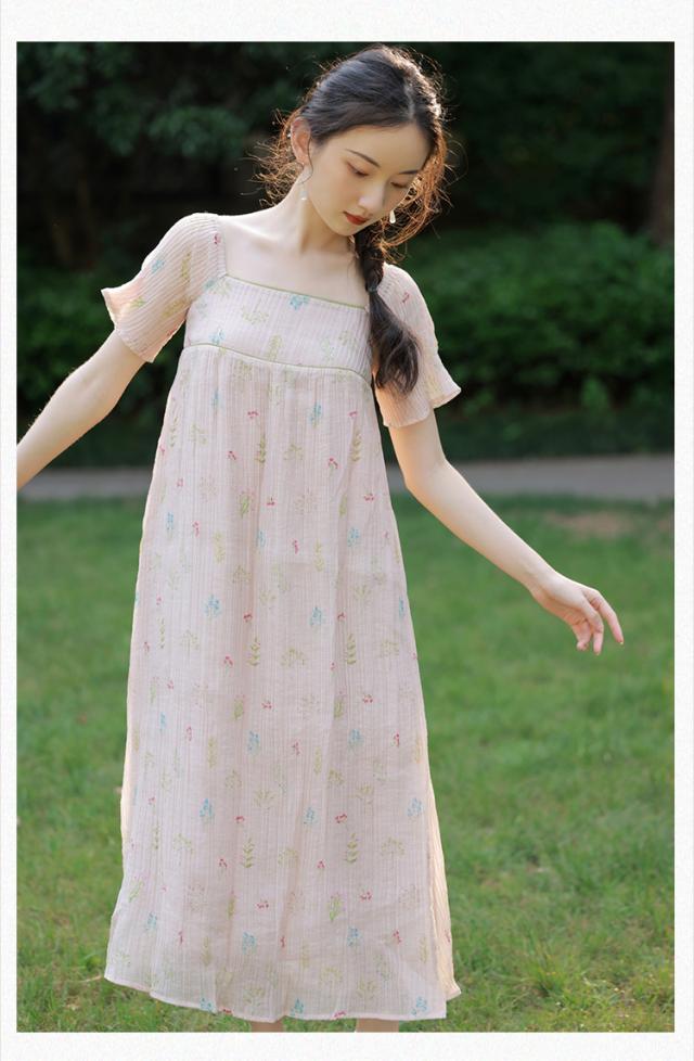ワンピース レディース 花柄ワンピース ロングワンピ S M L ピンク パステルカラー シャーベットカラー 花柄 フラワー フローラル ボタニカル 春 夏 半袖 リボン スクエアネック バックシャン 切り替え ロング丈 ロング ミモレ丈 膝下 フレア Aライン ふんわり ゆったり ゆる