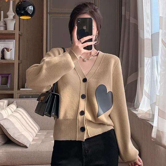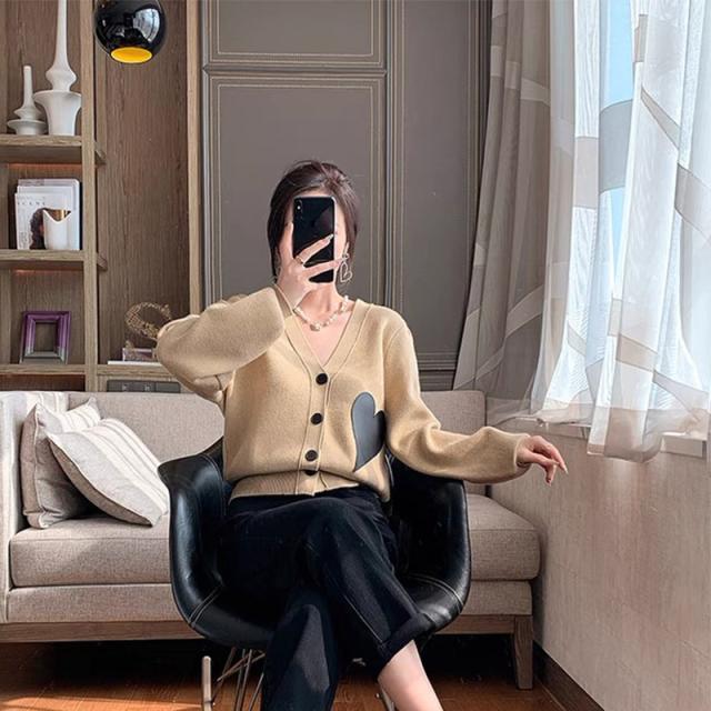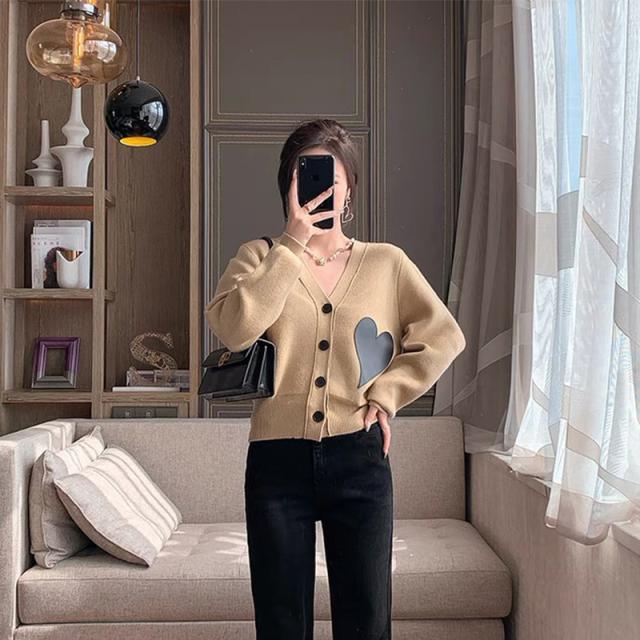 秋 セーター ジャケット トップス セーター ジャケット 上着 ショート丈 袖あり 長袖 Vネック 襟なし ストレート 前開き ニット かわいい 大人可愛い シンプル お洒落 レトロ こなれ感 キュート 無地 春 秋 10代 20代 レディース 女性用 ママ デート お出かけ 女子会 お泊まり
