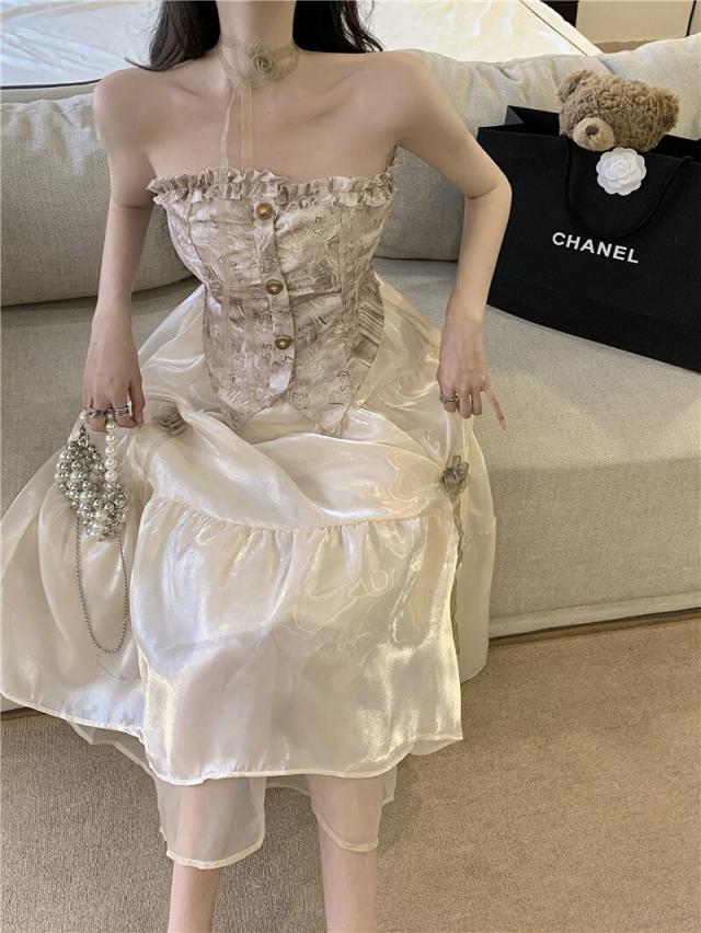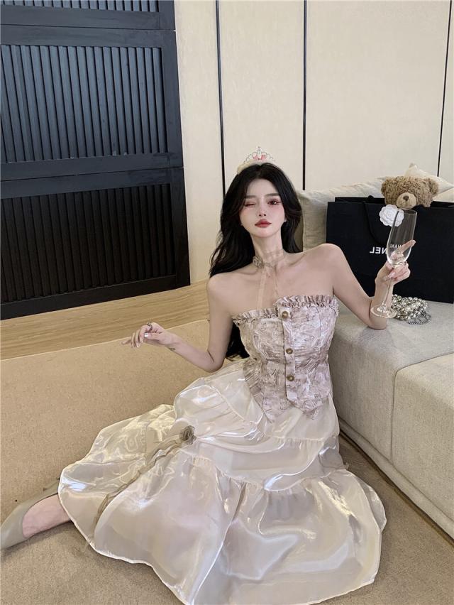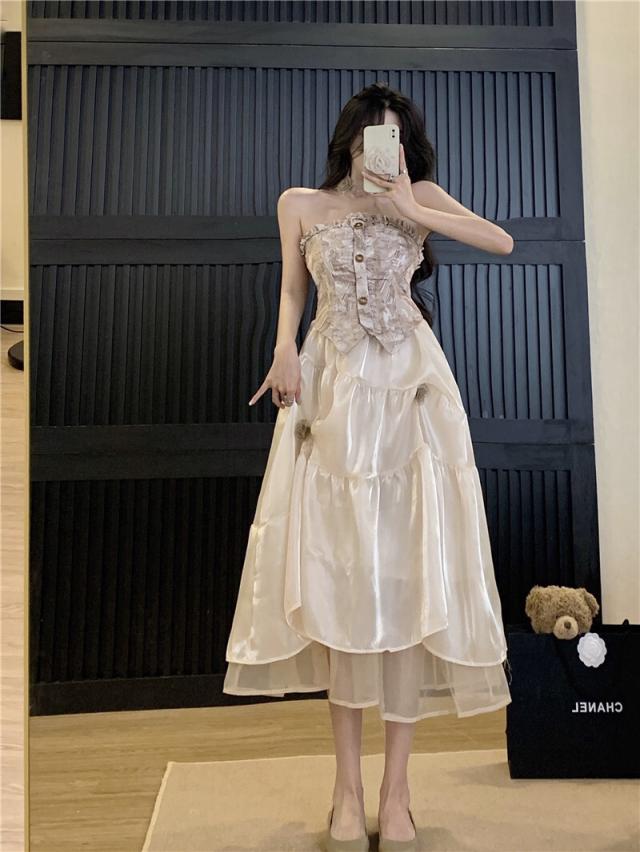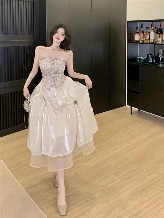 セット商品 チューブトップワンピース ミディアムワンピース ワンピース レディース クラシカルワンピース ミモレ丈 ドレス 肩見せ ウエストシェイプ ひざ下丈 大人可愛い きれいめ 上品 レトロ キュート ガーリー エレガント フォーマル 春 夏 秋 冬 オールシーズン 二次会 お呼ばれ オフィス ビジネス OL 通勤 学生 通学 デート お出かけ パーティー イベント 女子会 休日 体型カバー 美脚 モテ 謝恩会 結婚式 披露宴 セレモニー トレンド インスタ映え つや感 S M シャンパン