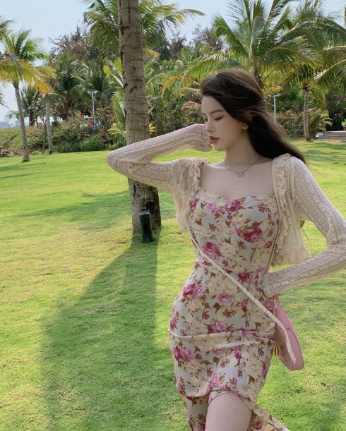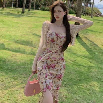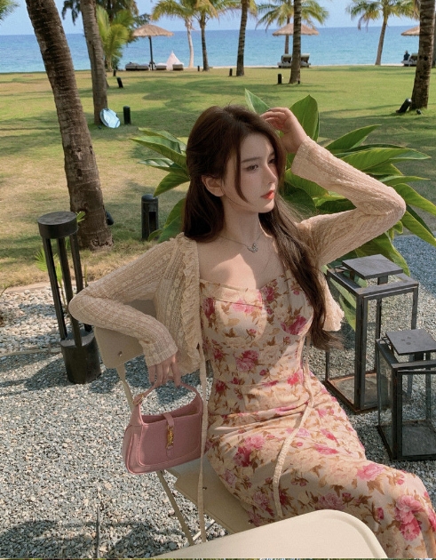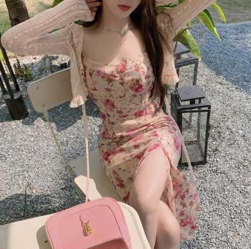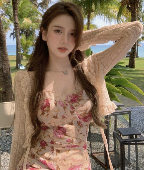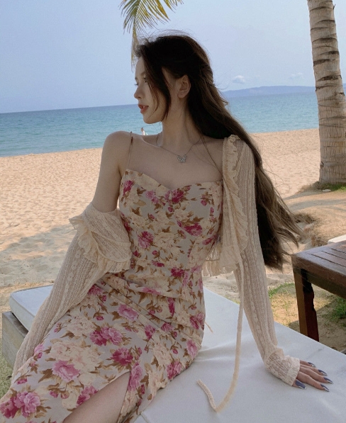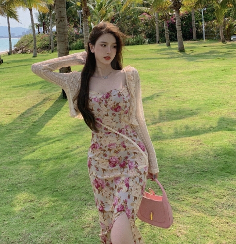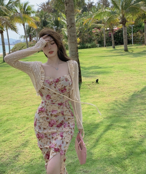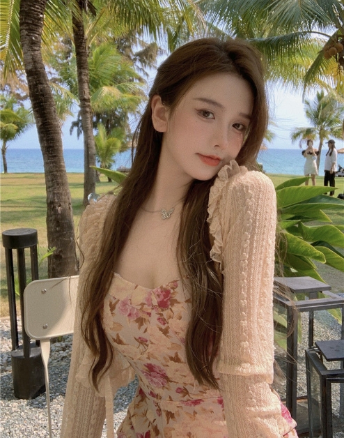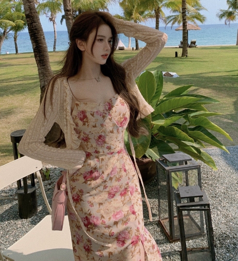 妖精 フレンチ ワンピース カーディガン フレアワンピース ミディアム丈 長袖 フレア レース フリル リボン スリット 透け感 ニット 薄手 2点セット ツーピース かわいい 大人可愛い エキゾチック ラブリー ガーリー セクシー とろみ感 花柄 春 夏 10代 20代 30代 レディース ペア 女の子 デート お出かけ 休日 リゾート 旅行 海 ガーデン 散歩 普段使い オルチャン コーデ モテ 小さめ