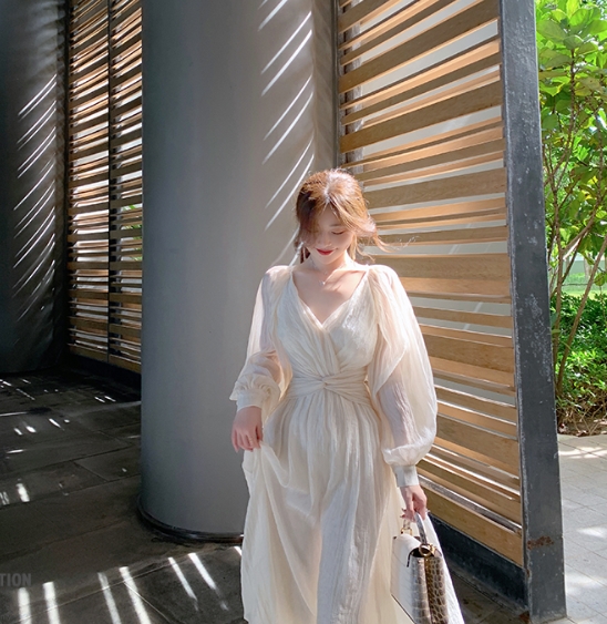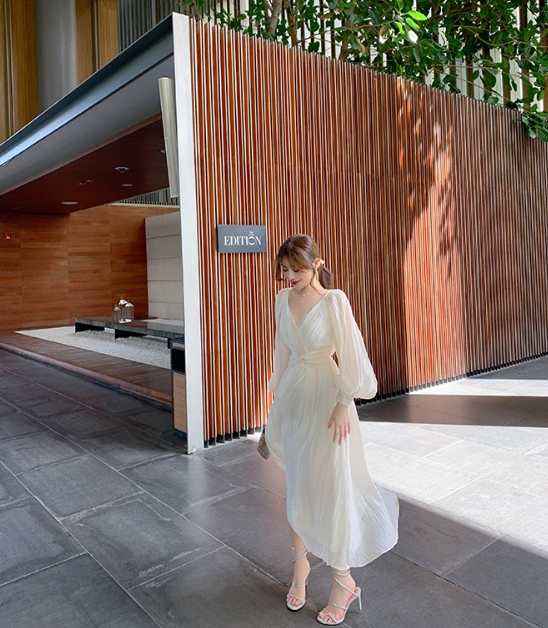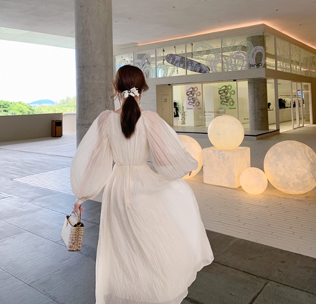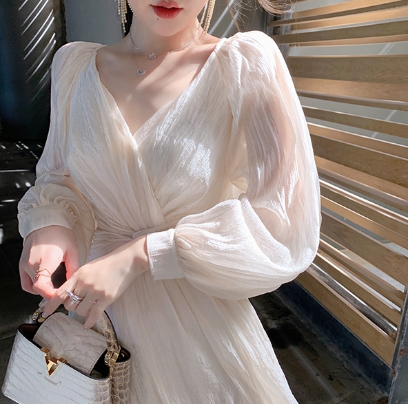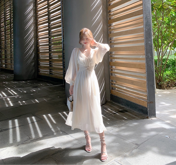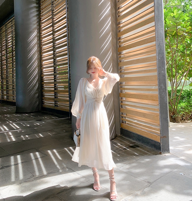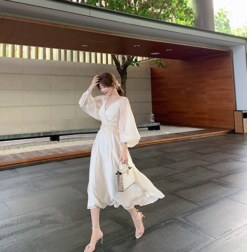 妖精 ワンピース フレアワンピース ワンピドレス ミモレ丈 袖あり 長袖 ボリューム袖 パフスリーブ Vネック フレア シフォン ウエストマーク 透け感 薄手 大人可愛い きれいめ シンプル 上品 ラブリー キュート エレガント 抜け感 無地 春 10代 20代 30代 40代 レディース 女性用 ママ 女の子 デート お出かけ 公園デビュー お泊まり 休日 パーティー リゾート 旅行 海 高原 ガーデン 散歩 着回し ファッション モテ 体系カバー ギフト サイズ S M L XL ホワイト