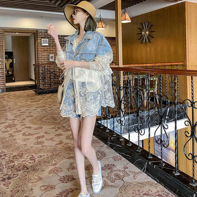 総レース デニムジャケット 長袖 レディース 日焼け デニム トップス カーディガン レース こなれ感 ラフ ロング丈 ショート丈 切り替え ドッキング 羽織 春 夏 20代 30代 40代 お洒落 オシャレ 大人女子 可愛い 大人可愛い トレンド 韓国 個性派 個性的 UV 透け感 抜け感 ゆったり 大きめ エレガント カジュアル 透け感
