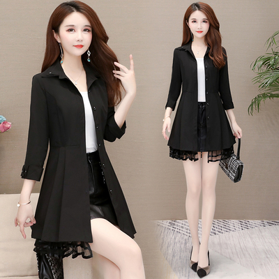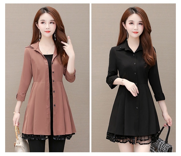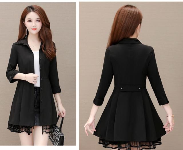 ミニ丈で裾のレースが可愛い7分袖のトレンチコートです。