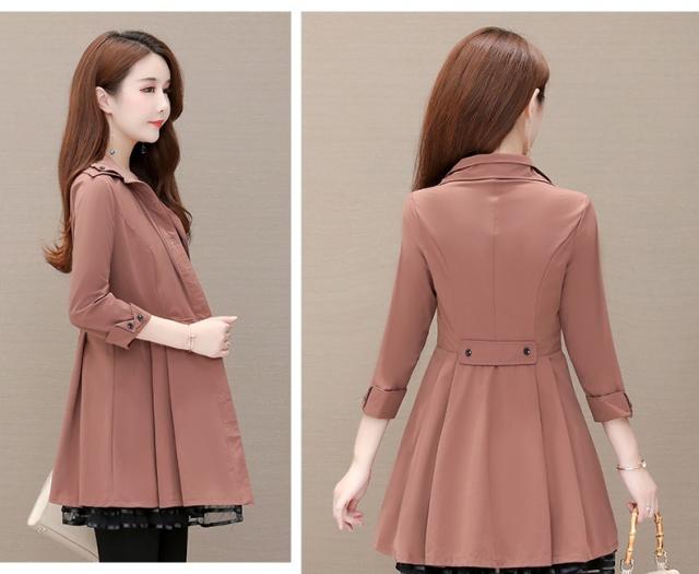 トレンチコート 7分袖 Aライン ショート丈 レディース 大きいサイズ 大きめ プリーツ アウター こなれ感 着やせ タイト スリム 大人女子 きれいめ カジュアル エレガント ハイウエスト 20代 30代 コート 春 秋 薄手 レース 3XL 4XL 5XL ウエストマーク 細見え 体型カバー 膝上 膝上丈 プリーツスカート ミニ丈 かわいい 大人可愛い くすみカラー 美脚 脚長