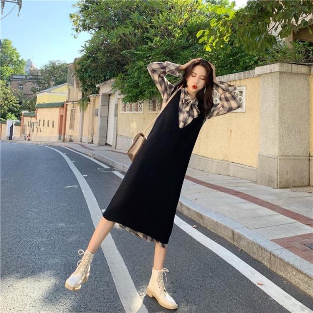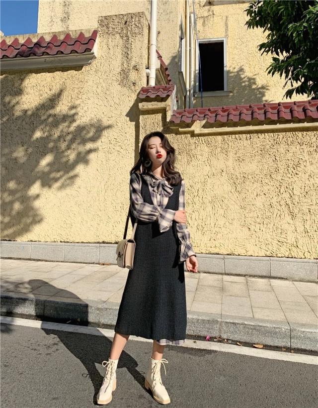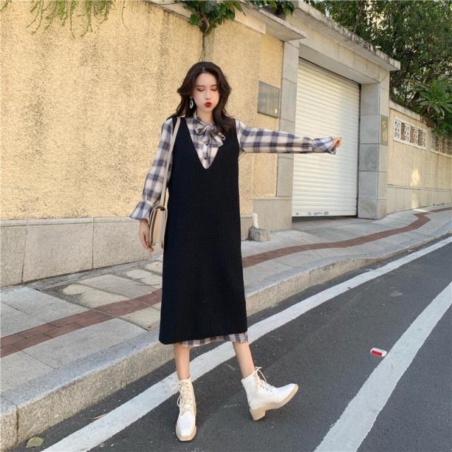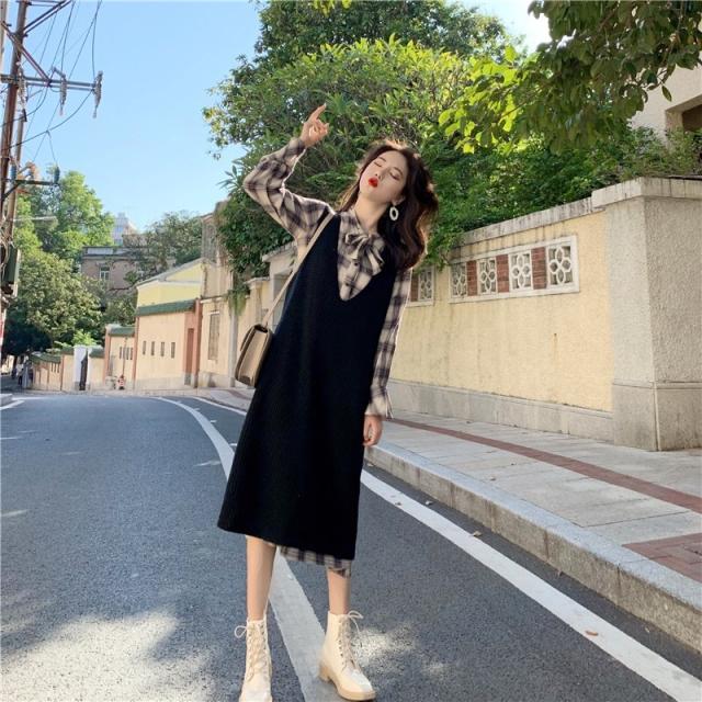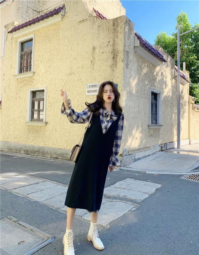 ワンピース シャツワンピース ひざ丈 長袖 2点セット かわいい 大人可愛い カジュアル お洒落 大人可愛い ガーリー チェック柄 春 夏 10代 20代 30代 40代 レディース 女性用 ママ 学生 通学 デート お出かけ 女子会 休日 高原 ガーデン レストラン ファッション コーデ スタイル サイズ M L XL 2XL