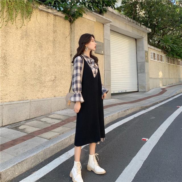 チェックシャツワンピースとジャンパースカートの