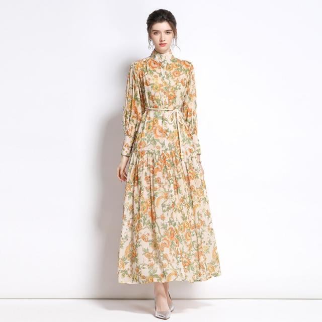 ロングドレス ワンピース ドレス ロング ロング丈 長袖 ベルト ミドルウエスト ポリエステル かわいい 大人可愛い きれいめ 大人 上品 おしゃれ お洒落 レトロ 大人女子 ガーリー 花柄 小花柄 フラワー 秋 20代 30代 レディース 女性用 デート お出かけ 女子会 休日 ホテル レストラン 普段使い ファッション コーデ スタイル 楽ちん 体系カバー M L XL 2XL 秋カラー