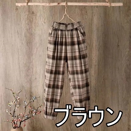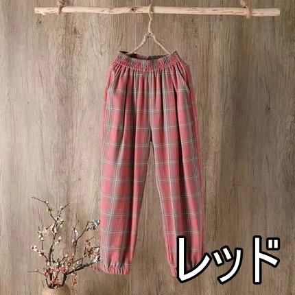 チェック柄 ハイウエスト ワイドパンツ 大きいサイズ レディース ウエストゴム 大きめ ラフ くすみカラー レトロ 個性派 個性的 こなれ感 春 夏 秋 暖かい カジュアル シンプル 2XL 3XL 4XL 九分丈 オシャレ お洒落 かわいい 大人女子 部屋着 ルームウェア パジャマ