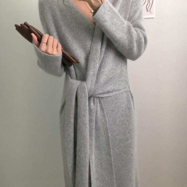 秋 エレガント セーター ワンピース ニットソー セーター 上着 ロングスカート ワンピドレス 膝下 ロング丈 袖あり 長袖 Vネック 襟なし レース ふわふわ 前開き 透け感 ニット 大人可愛い きれいめ シンプル お洒落 大人女子 個性的 モダン 無地 秋 10代 20代 レディース