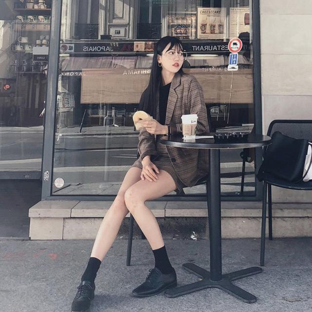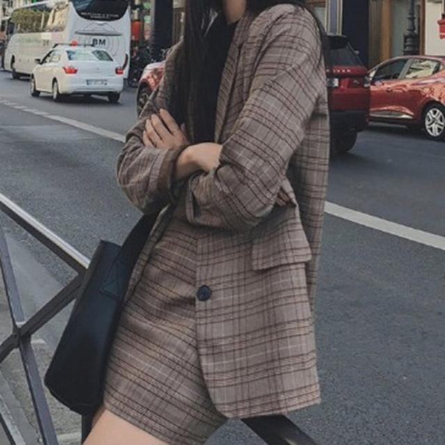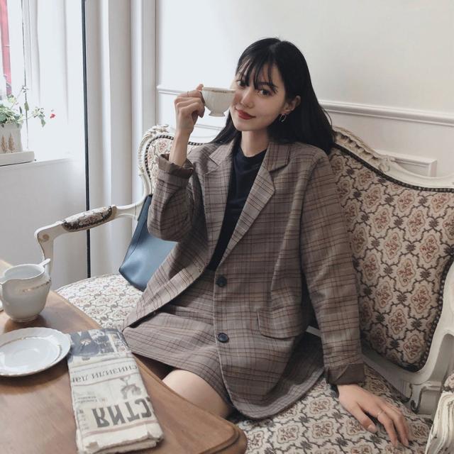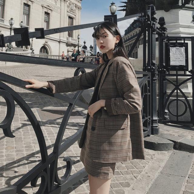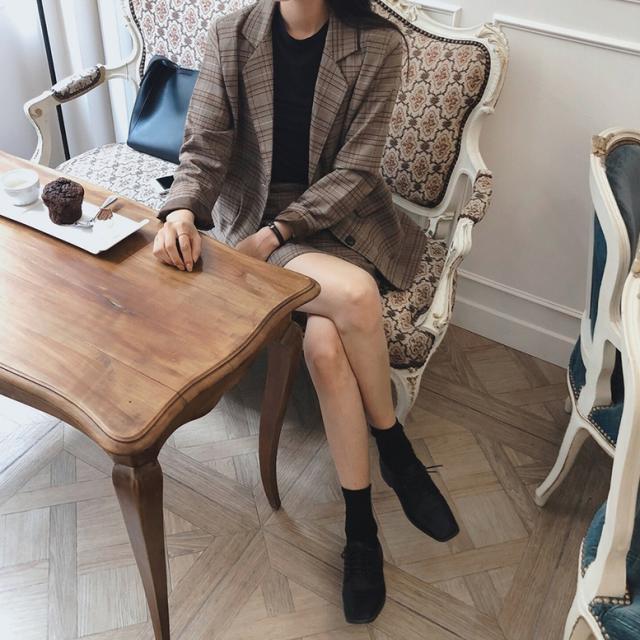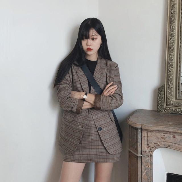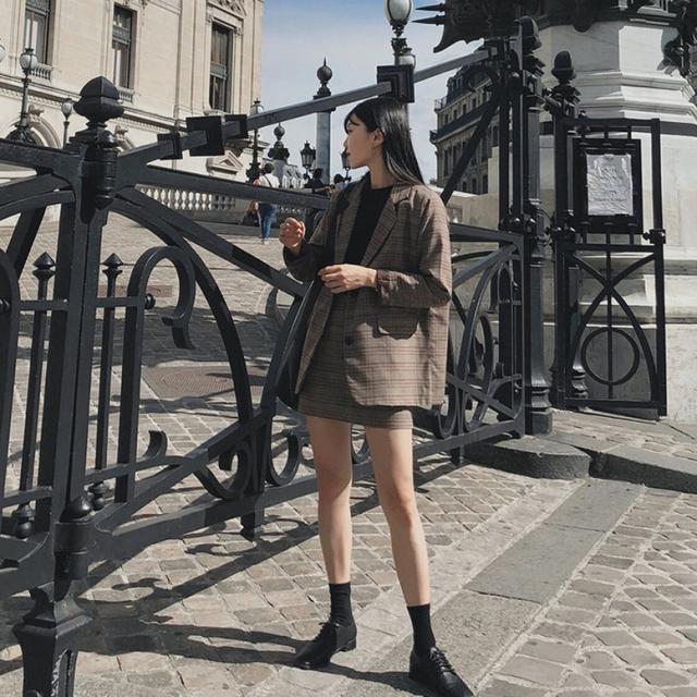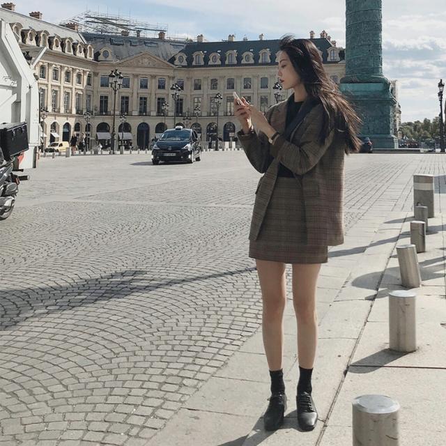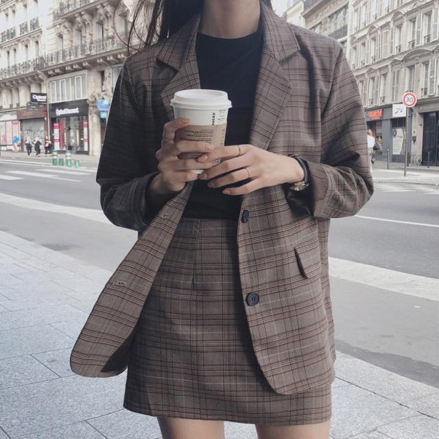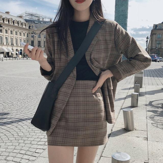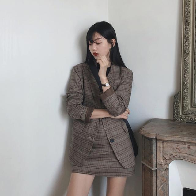 レトロなチェック柄のミニスカートスーツ