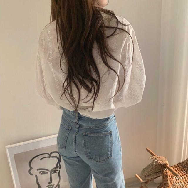 トップス ブラウス レース 長袖 レディース ランタンスリーブ ボリューム シャツ フリル 透け感 エレガント 上品 清楚 高級感 きれいめ かわいい 大人可愛い ガーリー フェミニン カジュアル お洒落 オシャレ ゆったり 体型カバー 着痩せ 白 ホワイト 無地 韓国 トレンド 流行 春 夏 秋 量産型 姫系 ロリータ レトロ ヴィンテージ アンティーク 20代 30代 40代 着回し 重ね着 デート 女子会 モテ 映え とろみ 抜け感 こなれ感 映え SNS 華奢 清潔感