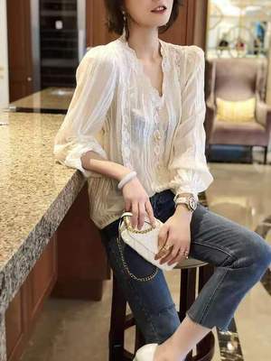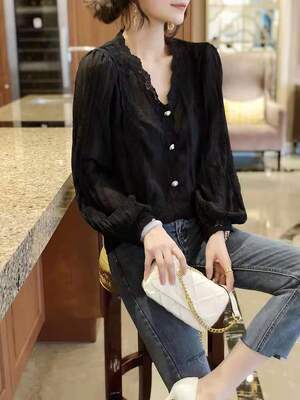 透け感が可愛い総レースのブラウスです。