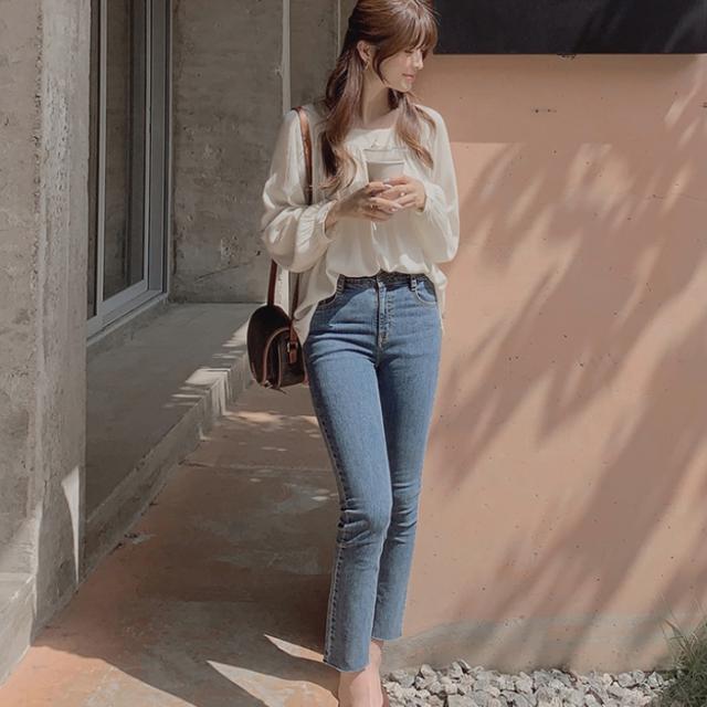 スクエアネックで鎖骨を見せて華奢見え効果も♪