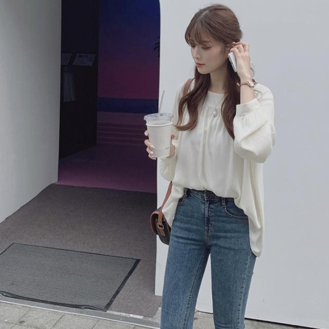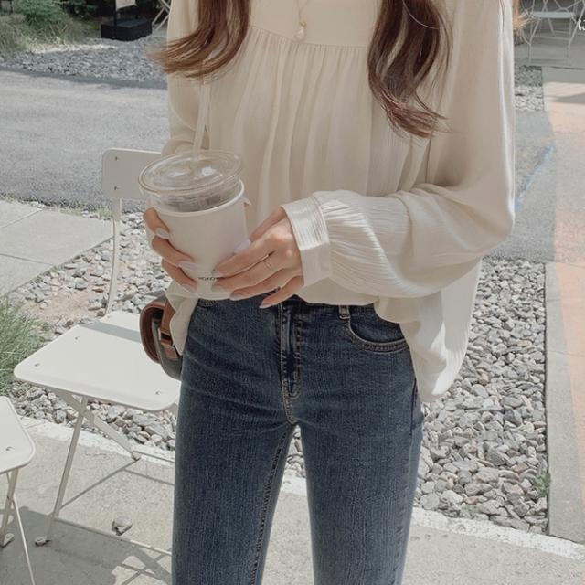 胸元のギャザーでフェミニンな雰囲気のブラウスです。