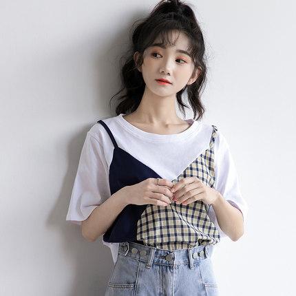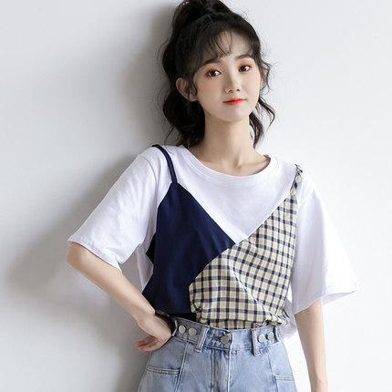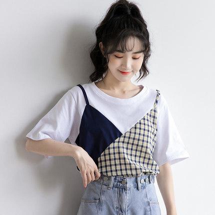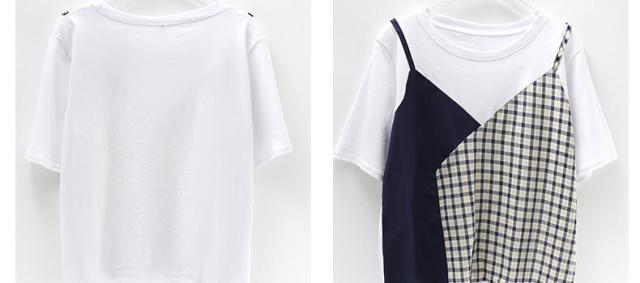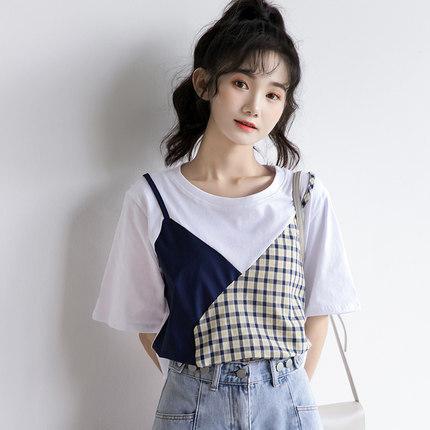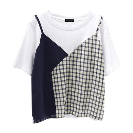 夏 チェック トップス トップス アウター Tシャツ シャツ プルオーバー ショート丈 袖あり 半袖 ラウンドネック 襟なし ストレート ふわふわ 異素材MIX かわいい 大人可愛い シンプル カジュアル お洒落 レトロ 大人女子 こなれ感 スポーティー モダン 無地 夏 レディース 女性用 ママ 女の子 オフィス ビジネス OL 通勤 学生 通学 お出かけ お泊まり アウトドア パーティー レストラン 普段使い スタイル 楽ちん モテ インスタ映え M L XL 2XL 画像1