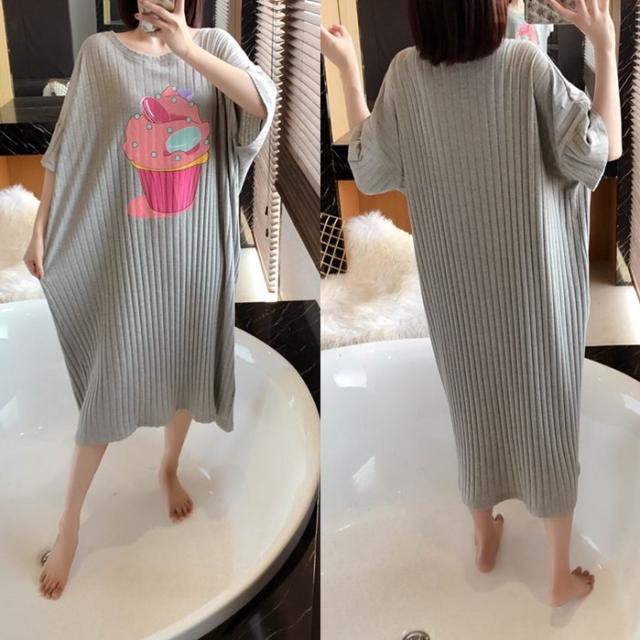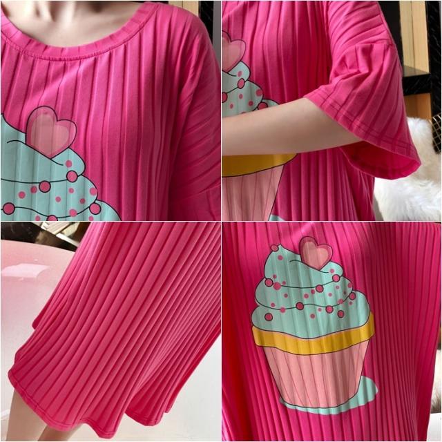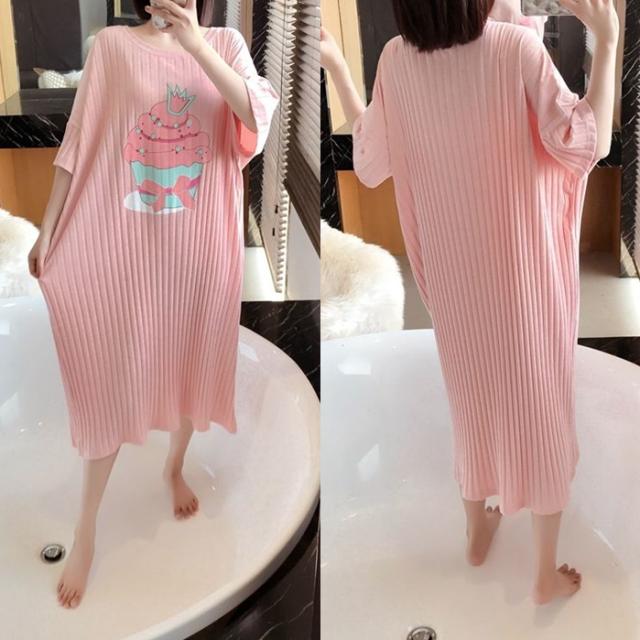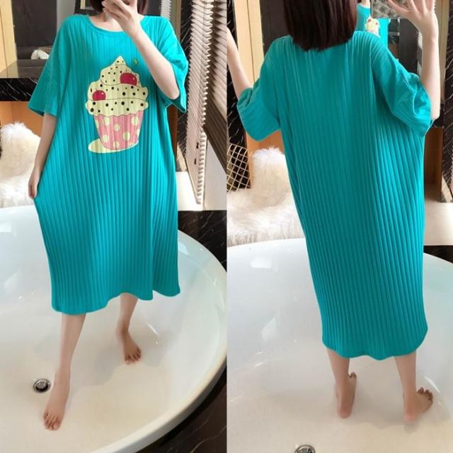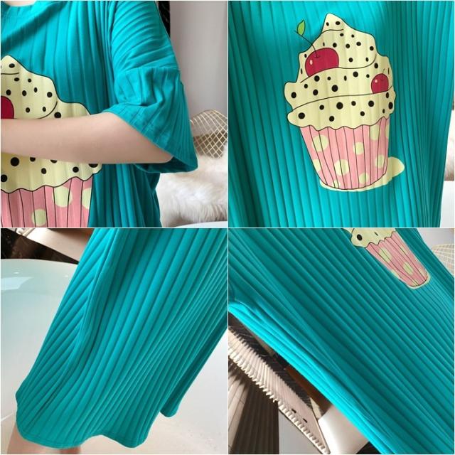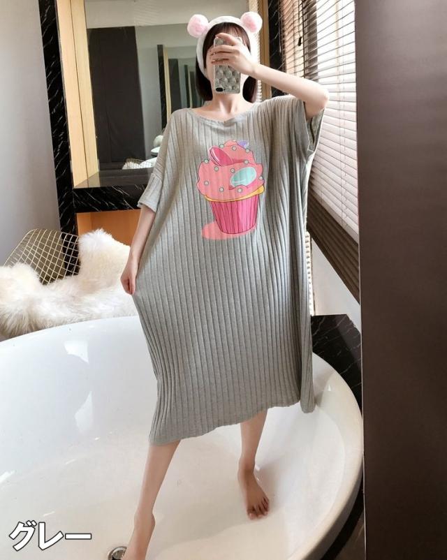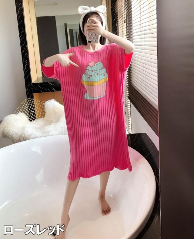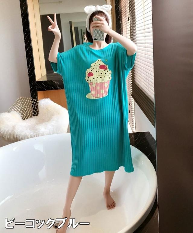 ルームウェア レディース ナイトドレス ネグリジェ パジャマドレス パジャマ ワンピース ワンサイズ フリーサイズ ピンク グレー 灰色 ピーコックブルー 青 ローズレッド パステルカラー シャーベットカラー ラウンドネック 半袖 五分袖 5分袖 フレアスリーブ リラックス ミドル丈 ミドル ミディ丈 ミディ 膝丈 フレア Aライン 体型カバー ママ マタニティ フェミニン ナチュラル キュート ガーリー 大人 大人可愛い 存在感 主役級 デート 休日 お泊り ポップ レトロ かわいい ケーキ プリント