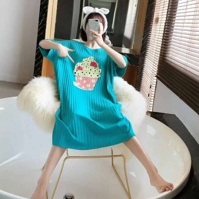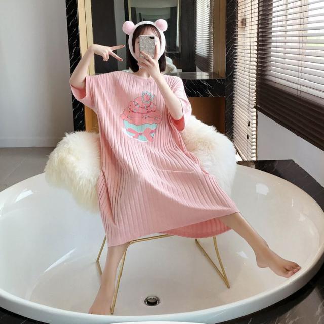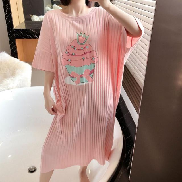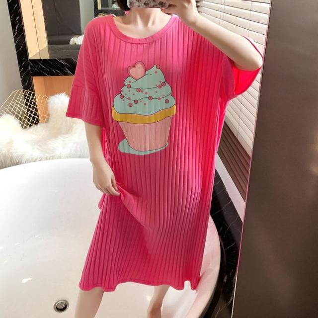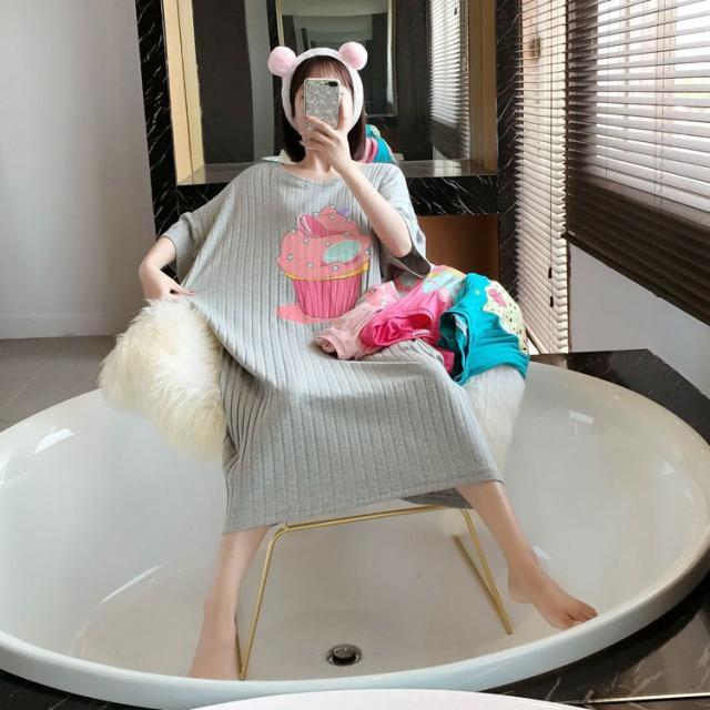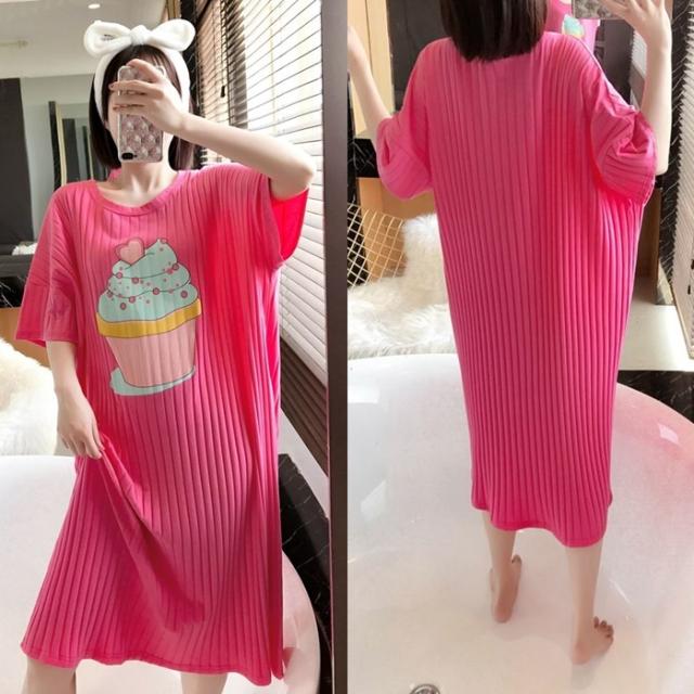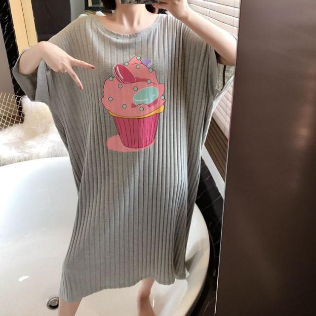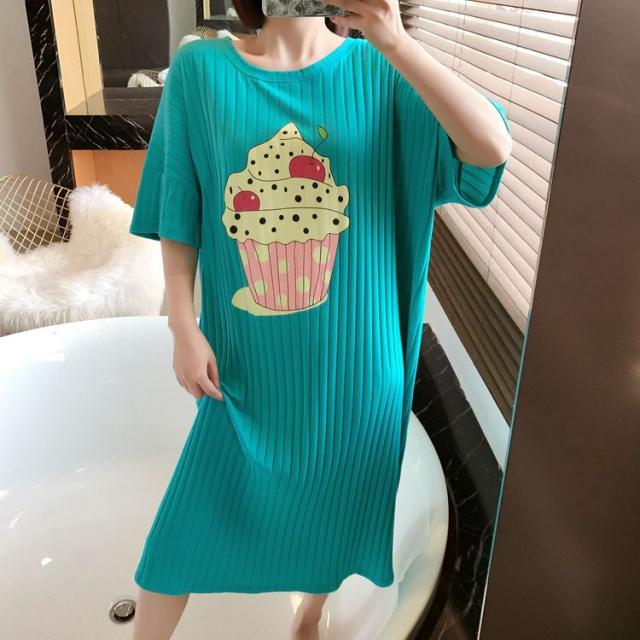 ルームウェア レディース ナイトドレス ネグリジェ パジャマドレス パジャマ ワンピース ワンサイズ フリーサイズ ピンク グレー 灰色 ピーコックブルー 青 ローズレッド パステルカラー シャーベットカラー ラウンドネック 半袖 五分袖 5分袖 フレアスリーブ リラックス ミドル丈 ミドル ミディ丈 ミディ 膝丈 フレア Aライン 体型カバー ママ マタニティ フェミニン ナチュラル キュート ガーリー 大人 大人可愛い 存在感 主役級 デート 休日 お泊り ポップ レトロ かわいい ケーキ プリント
