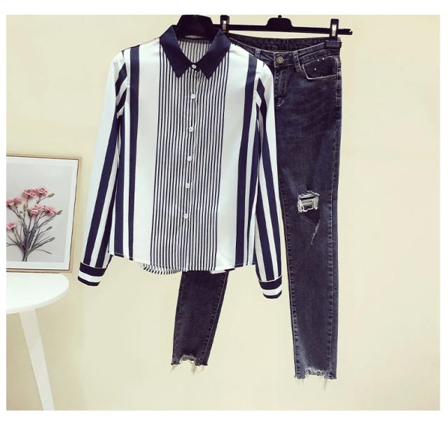 細めと太めのボーダーのコントラストがおしゃれなブラウスです。
