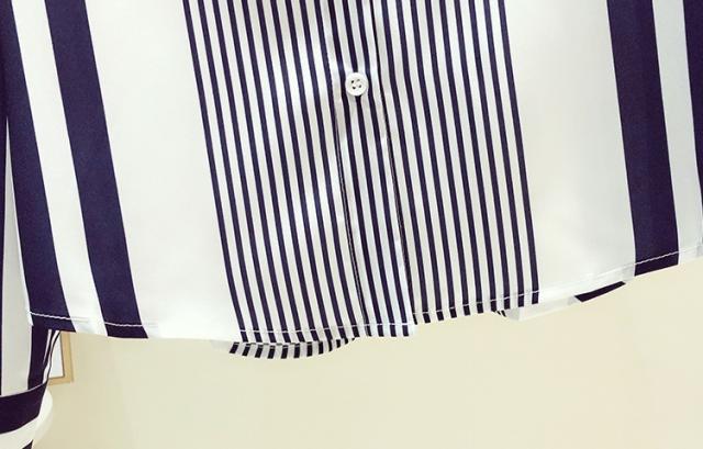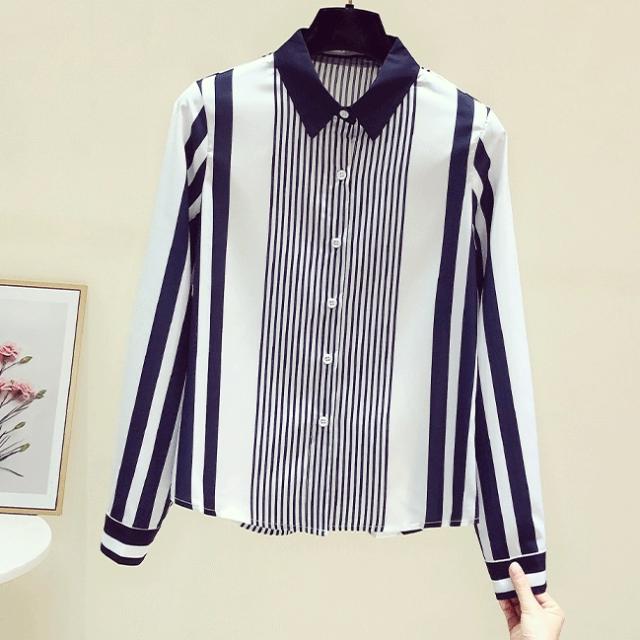 トップス ブラウス ストライプ 長袖 レディース 縦ストライプ 襟付き スタンドカラー サイズ展開 大きいサイズ 大きめ S М L XL 2XL 白 ホワイト ネイビー バイカラー お洒落 オシャレ シンプル カジュアル ラフ こなれ感 大人可愛い クール きれいめ 上品 知的 美人 20代