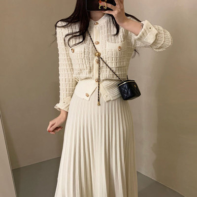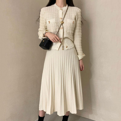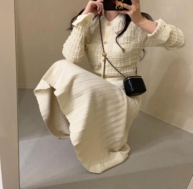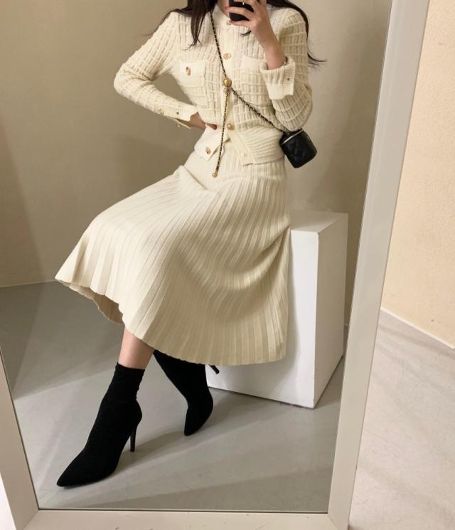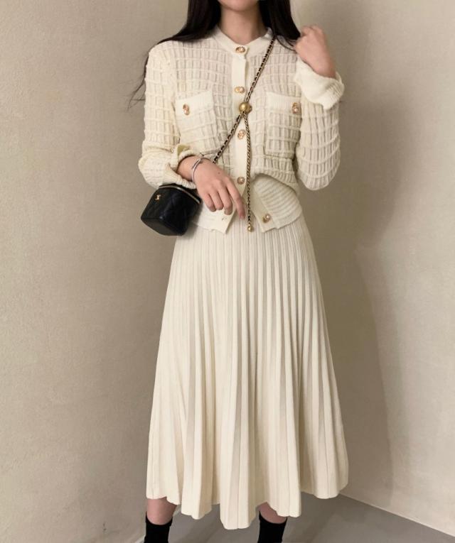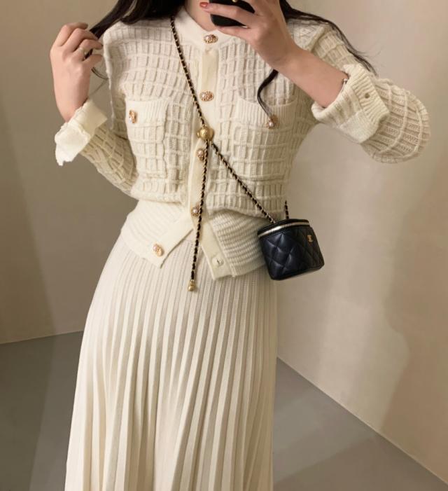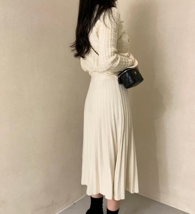 セットアップ 上下セット ニット カーディガン ロングスカート 長袖 レディース きれいめ 上品 エレガント無地 ベージュ 20代 30代 40代 50代 シンプル カジュアル ОL 通勤 普段着 普段使い Aライン レトロ アンティーク ヴィンテージ クラシカル かわいい 大人可愛い オシャレ お洒落 春 秋 冬 プリーツ 膝下 タイト スリム ショート丈 脚長 美脚 韓国 トレンド 流行 パール デザイン ボタン 前開き お得 お買い得 女子会 デート 映え SNS パーティー お呼ばれ