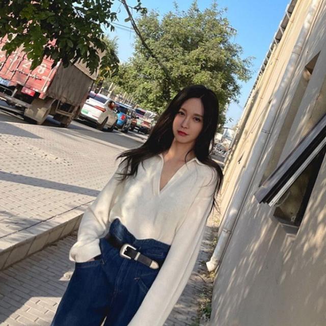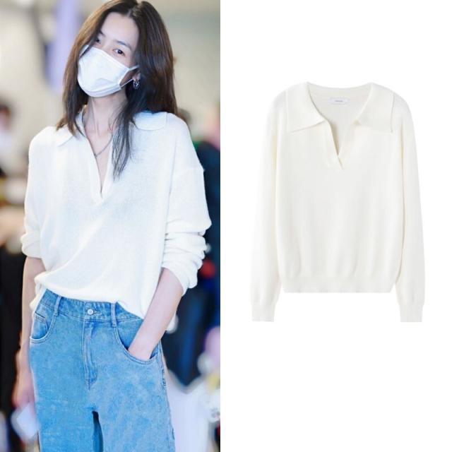 襟付きキーネックが抜け感を演出し、一気にこなれた大人ファッションに。
