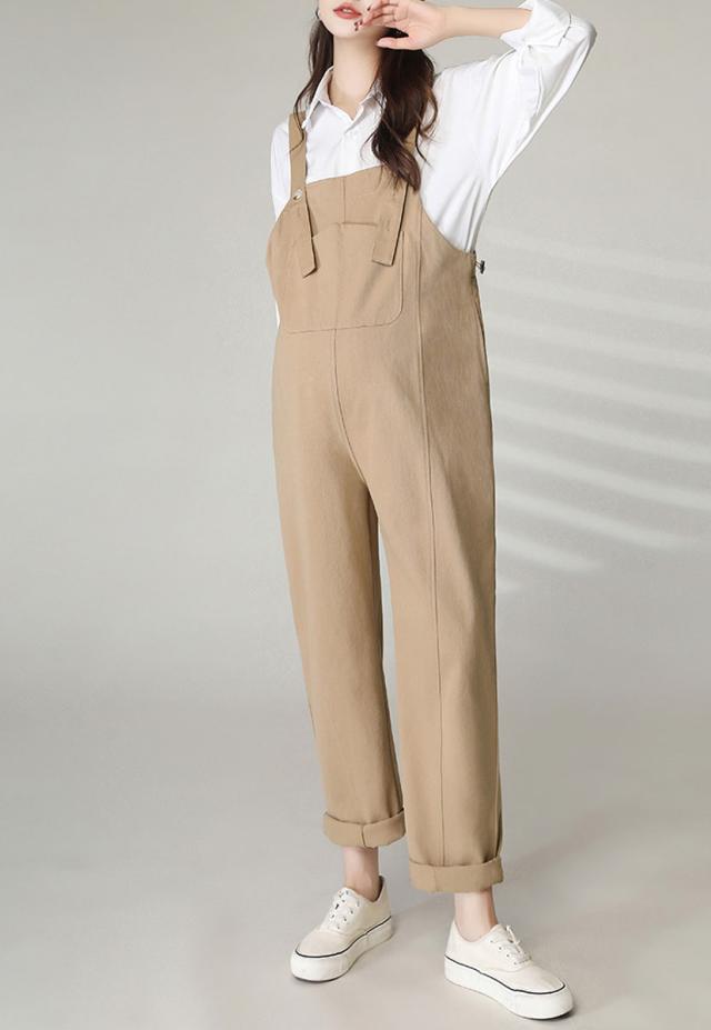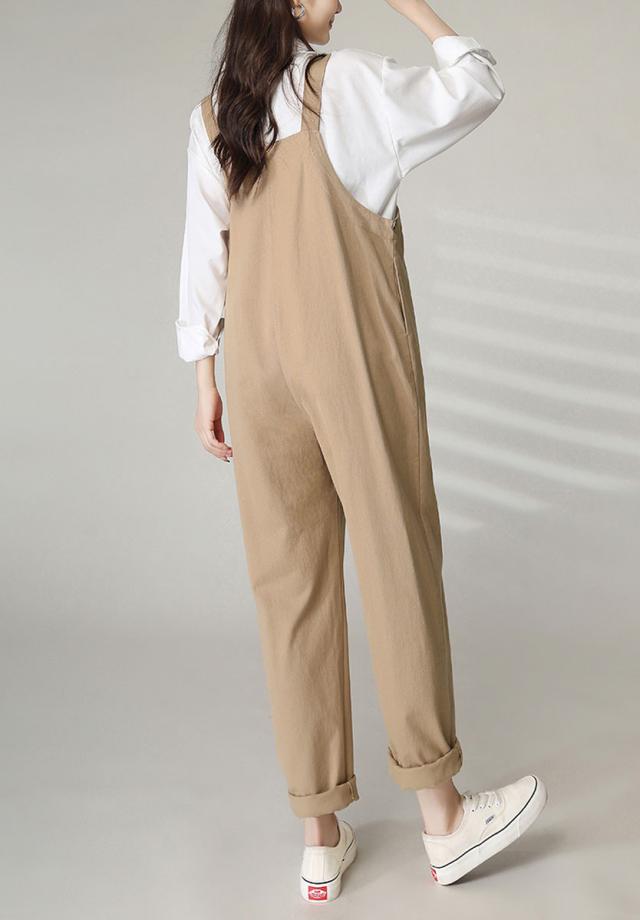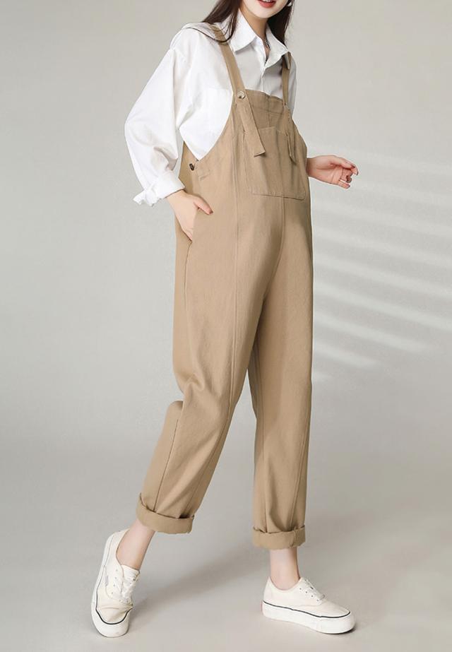 春秋 カジュアル オーバーオール パンツ ワンピース ズボン オーバーオール ミディアム丈 袖なし ノースリーブ 襟なし ポケット サスペンダー ルーズウエスト 異素材MIX かわいい 大人可愛い シンプル カジュアル 大人 レトロ こなれ感 ラフ スポーティー 個性的 モダン 無地