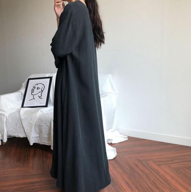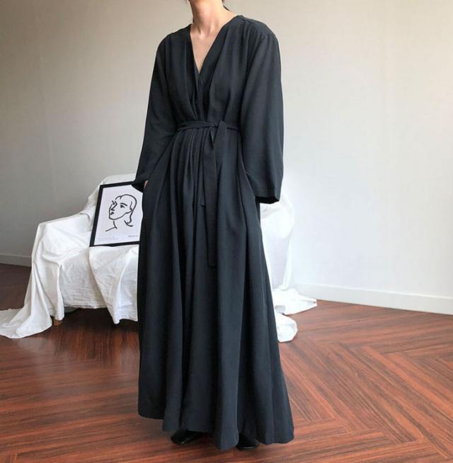 ワンピース フレアワンピース ロング丈 マキシ丈 長袖 ドロップショルダー Vネック 襟なし フレア セミフレア ワイド Aライン リボン ウエストマーク ウエストリボン 前開き ポリエステル 大人可愛い きれいめ シンプル カジュアル おしゃれ かっこいい 大人女子 こなれ感 ラフ ルーズ 主役級 存在感 抜け感 無地 春 秋 20代 30代 40代 50代 60代 レディース 女性用 デート お出かけ 女子会 休日 着回し 普段使い 重ね着 体系カバー フリーサイズ ゆったり ブラック ベージュ