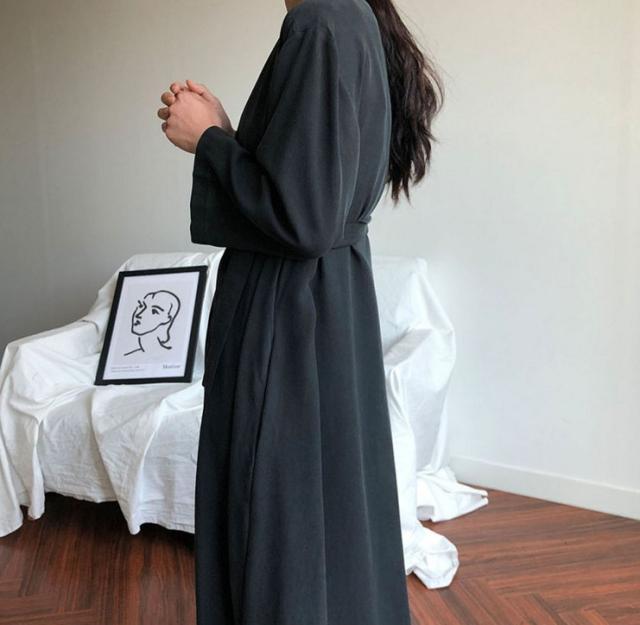 リボン付きなのでウエストマークしてスタイルアップ、ボタンをはずして羽織としても。