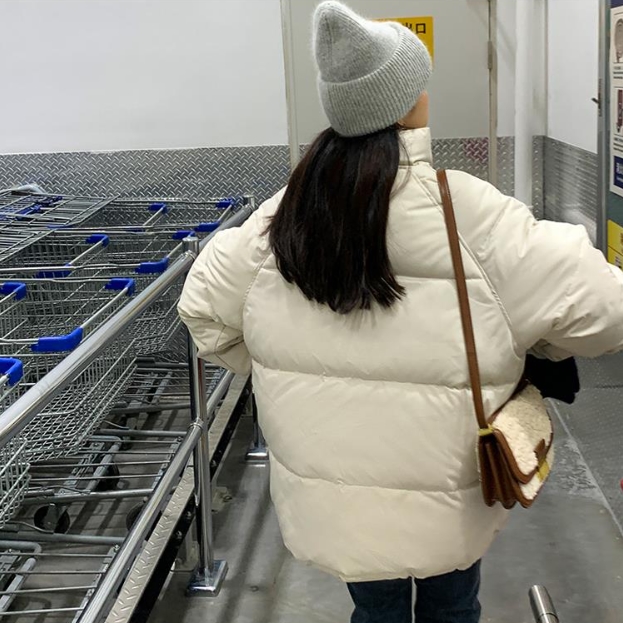ストリートスタイル アウター ジャケット ダウンジャケット ロング丈 長袖 ボリューム袖 ワイド スタンドカラー ワイド ファスナー 前開き ダウン 厚手 シンプル カジュアル 大人 こなれ感 ラフ マニッシュ ルーズ ストリート 無地 冬 10代 20代 30代 40代 50代 レディース