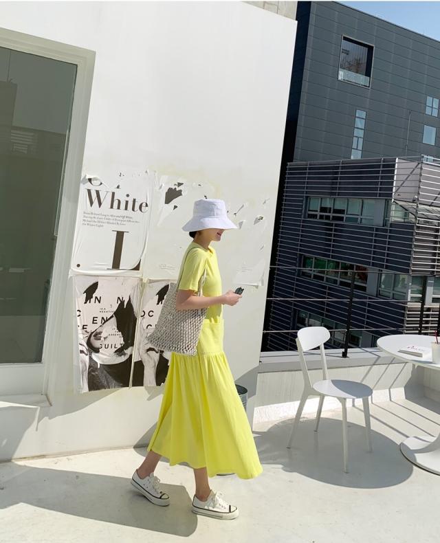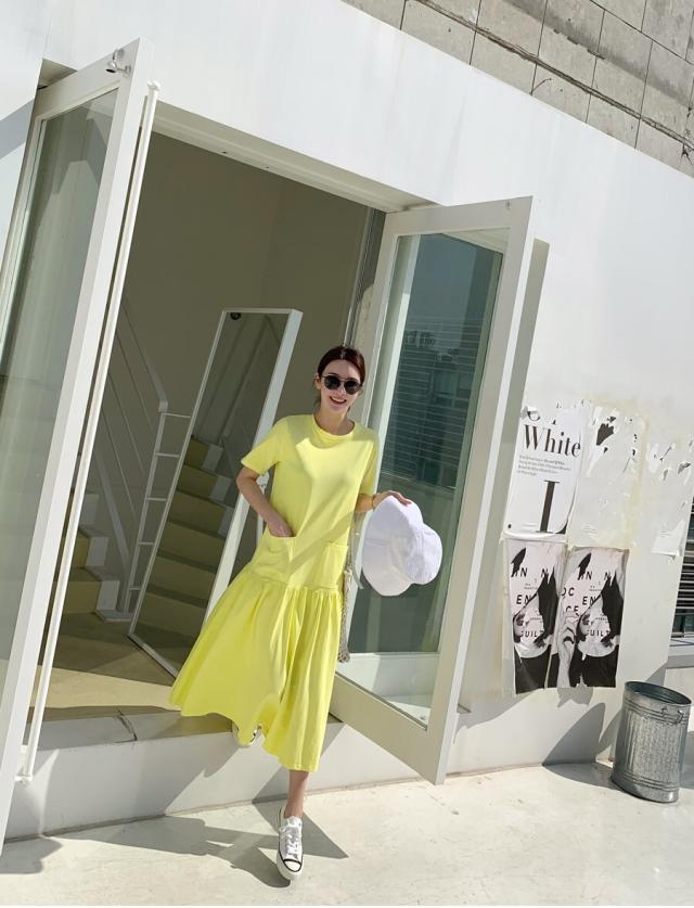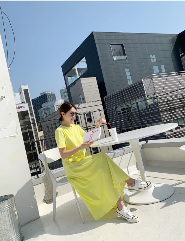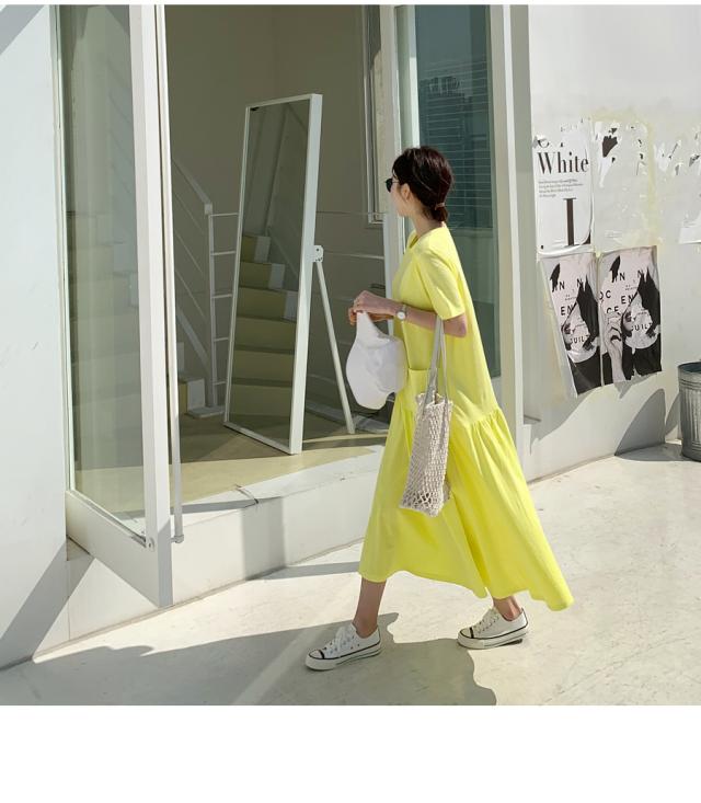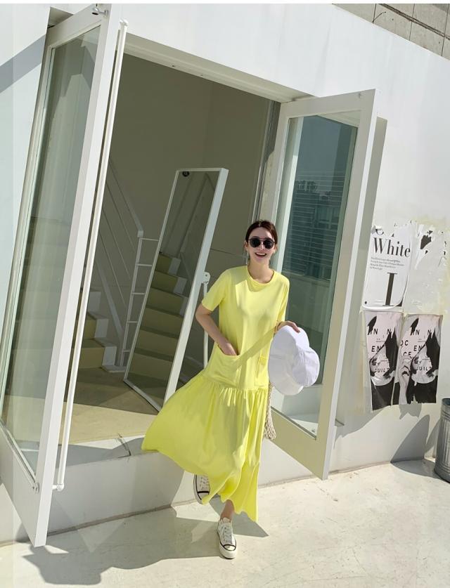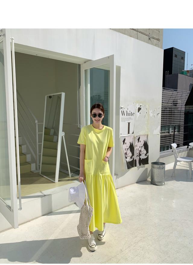 ワンピース Tシャツワンピース ミモレ丈 ロング丈 袖あり 半袖 クルーネック 襟なし フレア セミフレア ワイド 切り替えデザイン ドッキング ポケット 綿 かわいい 大人可愛い シンプル カジュアル おしゃれ お洒落 大人女子 こなれ感 ラフ ラブリー キュート ガーリー ルーズ 個性的 主役級 存在感 抜け感 無地 春 夏 10代 20代 30代 レディース 女性用 デート お出かけ 女子会 休日 リゾート 旅行 着回し 普段使い 重ね着 韓国系 オルチャン ファッション S M L XL イエロー