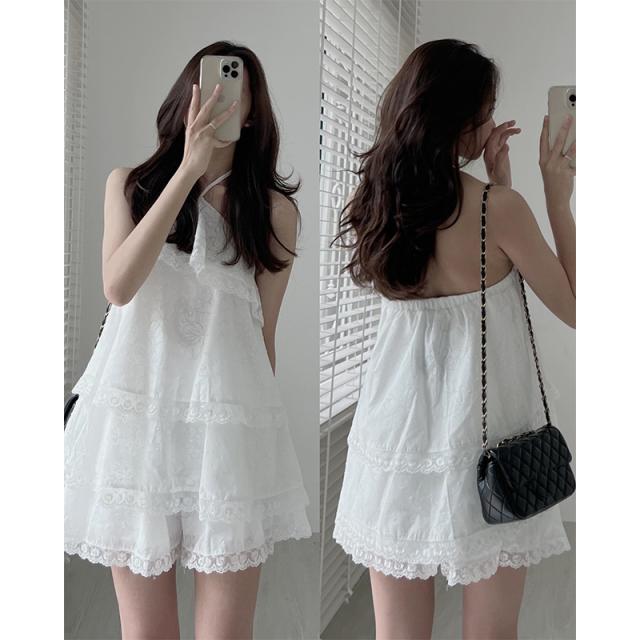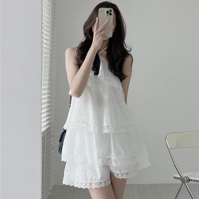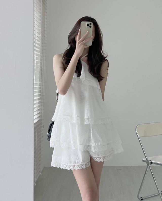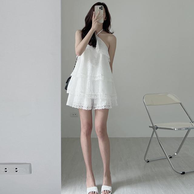 セットアップ レディース キャミソール ショートパンツ ホルターネック ノースリーブ フレア ティアード レース オフショルダー バックコンシャス バックシャン 上下セット 2点セット ツーピース かわいい きれいめ おしゃれ お洒落 ラブリー キュート ガーリー 個性的 セクシー 主役級 存在感 華やか S M 白 ホワイト 夏 10代 20代 30代 デート お出かけ 女子会 休日 パーティー イベント リゾート 旅行 海 プール 美脚 脚長 モテ プレゼント ギフト オルチャン 韓国 ファッション