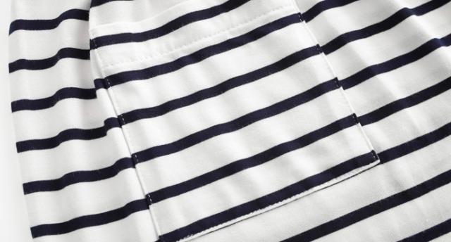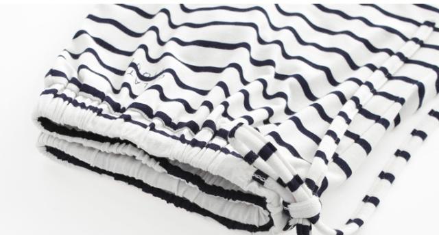 シンプルなロゴTシャツとボーダー柄パンツのセットです。
