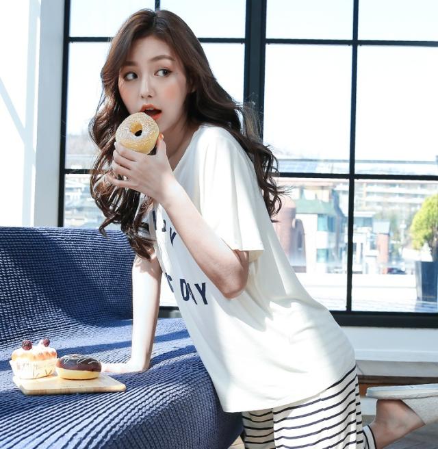 ルームウェア パジャマ 選べる ロングパンツ ショートパンツ レディース 半袖 ロゴ ボーダー ストライプ モノクロ 白黒 春 夏 秋 薄手 オシャレ お洒落 クール シンプル かわいい 大人可愛い ウエストゴム ゆったり 大きめ 大きいサイズ М L XL ラフ 寝巻 部屋着 パジャマ