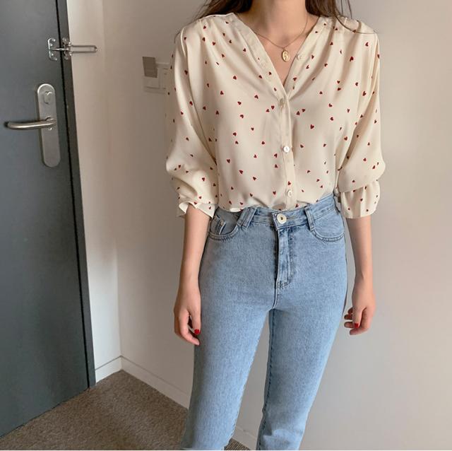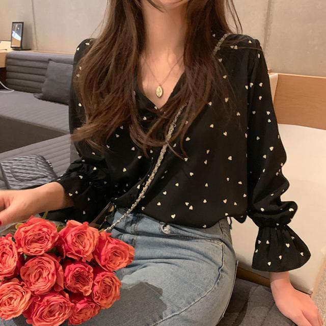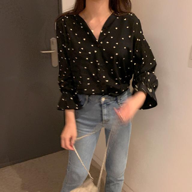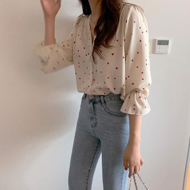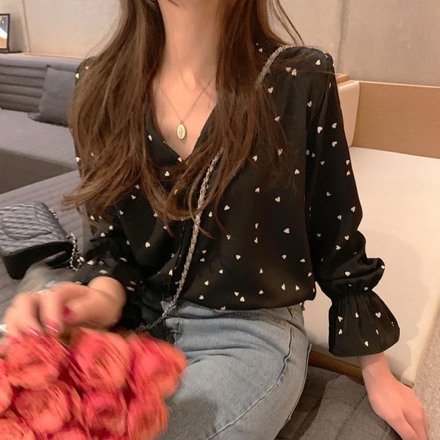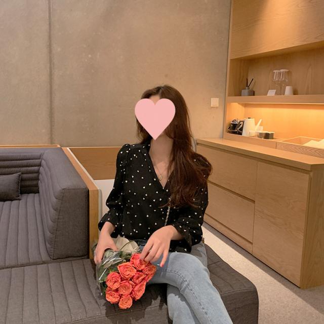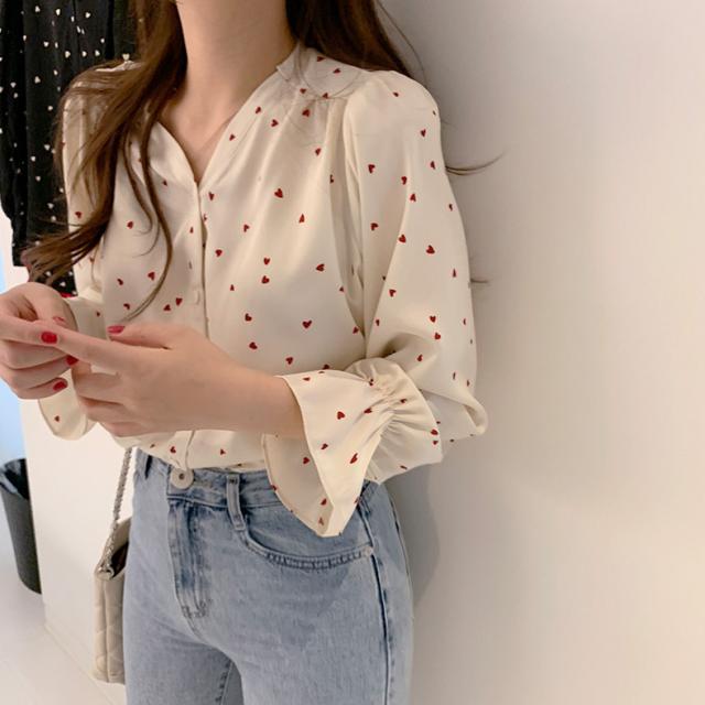 秋 シフォン シック トップス アウター シャツ ブラウス 上着 ショート丈 袖あり 長袖 ドールスリーブ Vネック 襟なし スリム レギュラー シフォン 前開き ボタン 異素材MIX かわいい 大人可愛い 大人 お洒落 エキゾチック こなれ感 キュート モダン 無地 秋 10代 20代